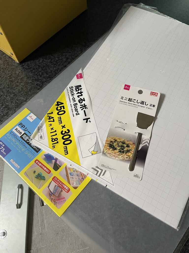 1番の問題は引き出しの前面とサイドを留めること。L字金具がいいけれど、近くの小さなダイソーには売ってない。で、お店をくまなく物色。