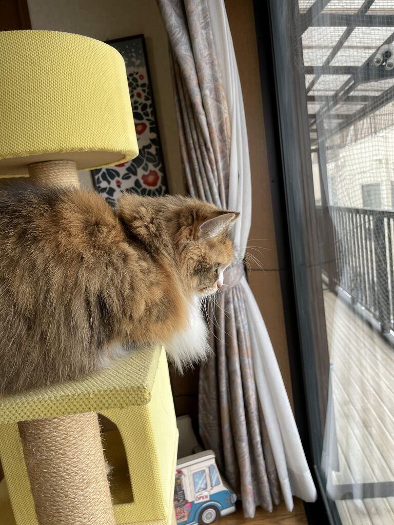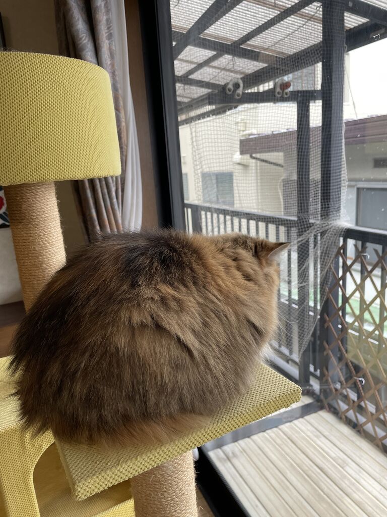 キャットタワーで外を見ながら