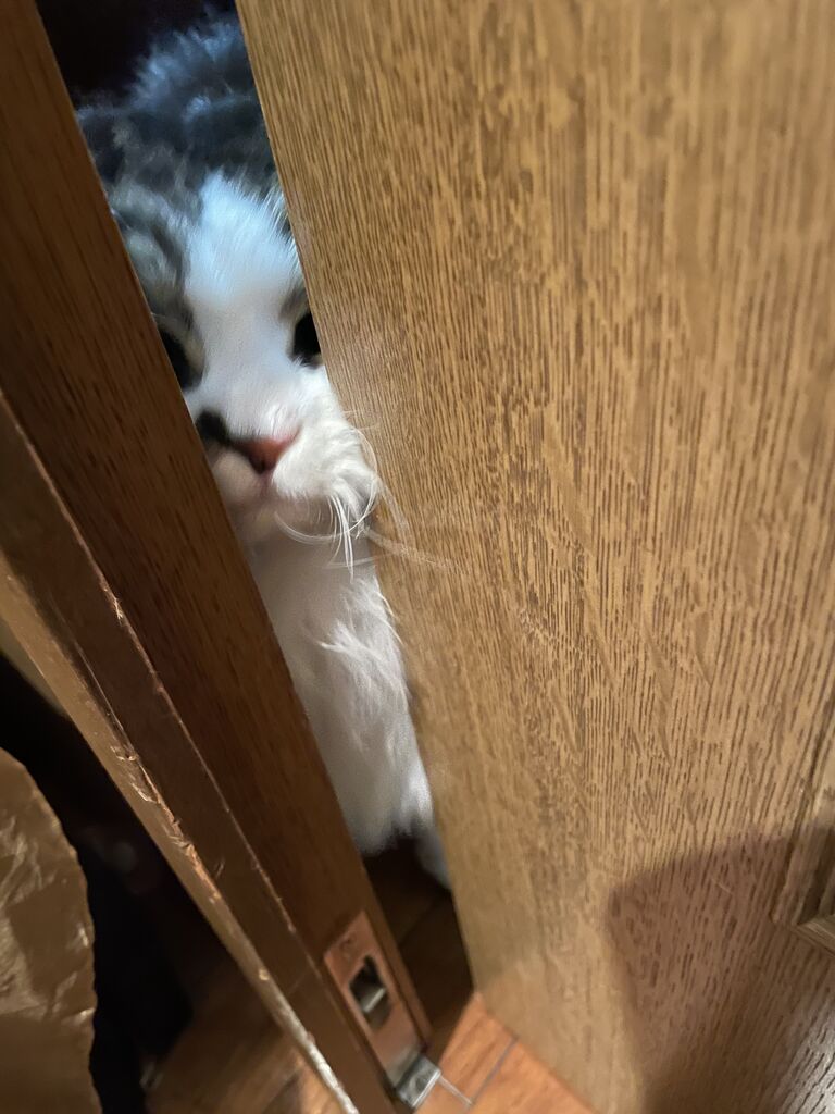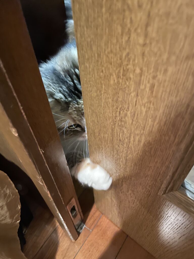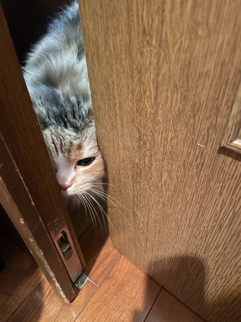 私がドアを少し開けたら顔をねじ込んできた