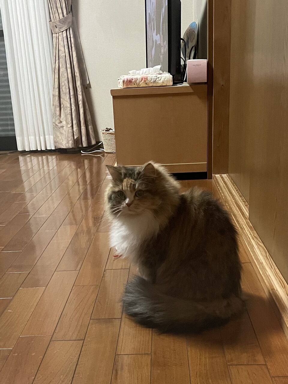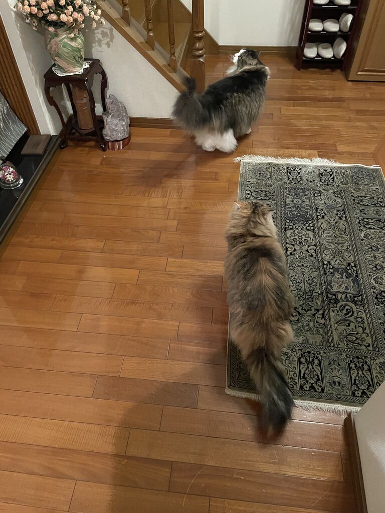 居間に入るとふたりとも居間をぐるっと1周、お台所のほうも巡回…これは義母に聞いた話。私はお風呂に入っているから見てないの(笑)