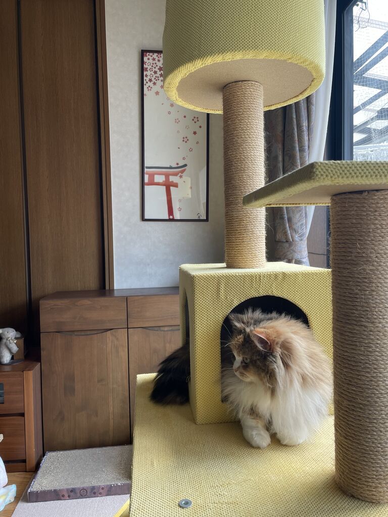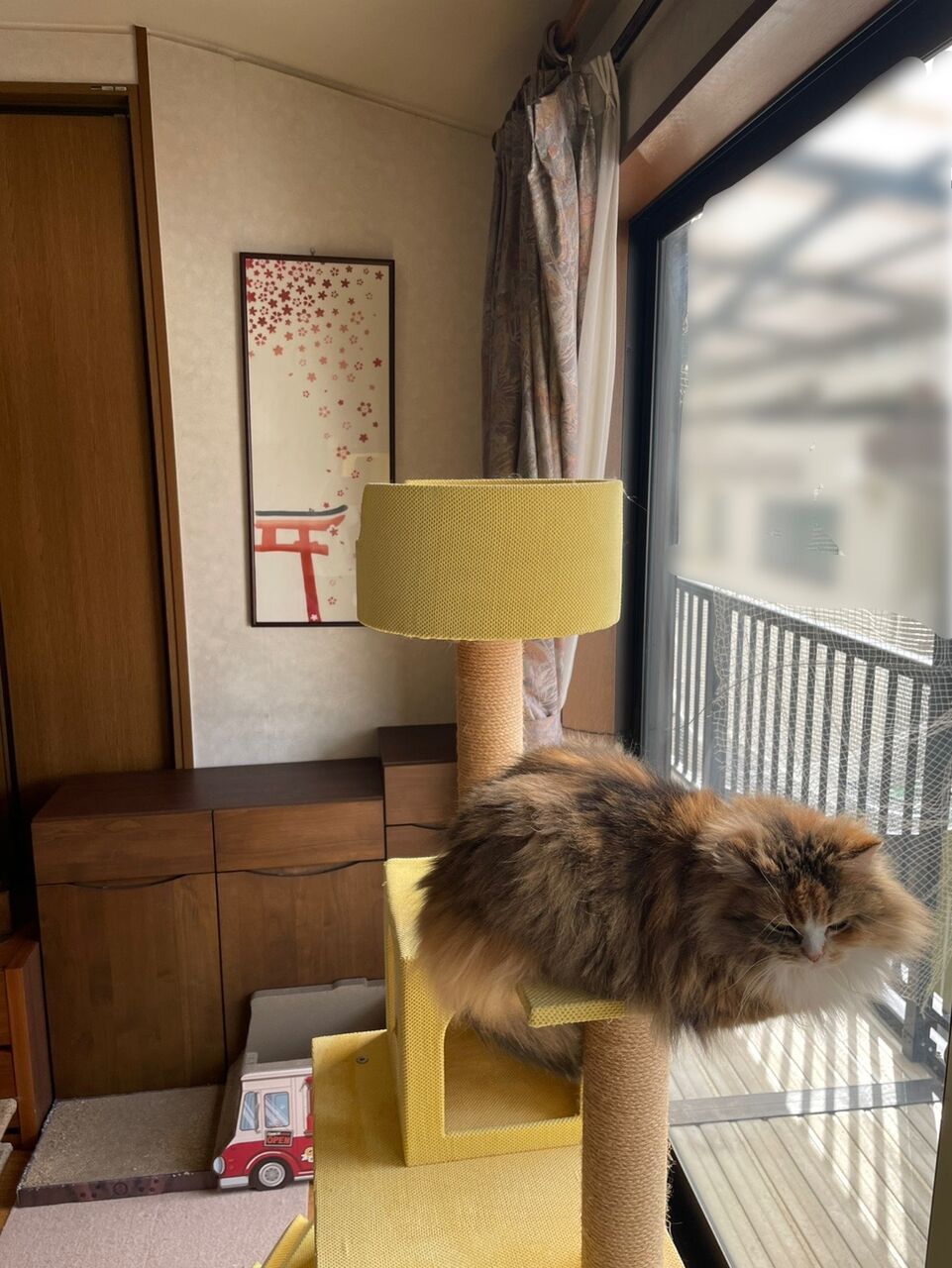 新年度1発目のブログは、桜の手ぬぐいをバックにくつろぐなぎの写真から。