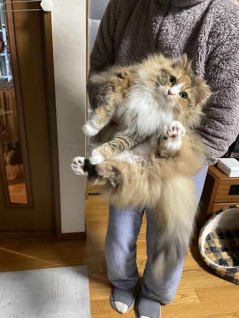 このあとなぎはアゴの下を拭いてもらい、しばらく揺られたあと「なにやってんだ?わたし」と気づいたのか慌てて逃げ出した。