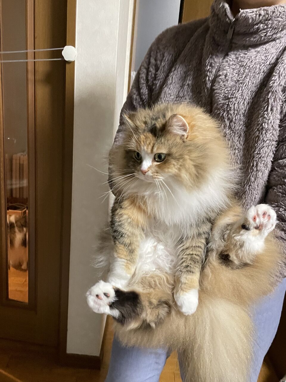 逃げたなぎを追いかけるのは面倒なので、最近はなぎが油断しているときにそっと近寄りサッと捕まえて拭く作戦に。