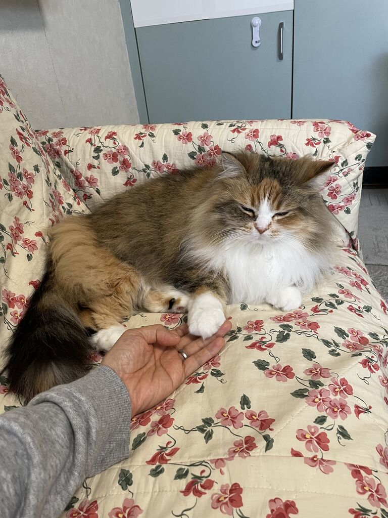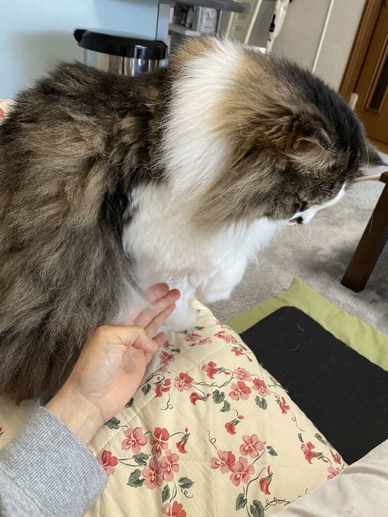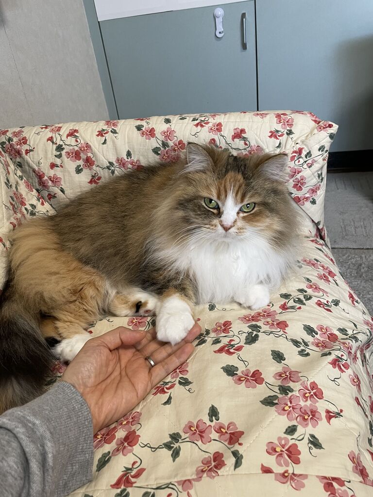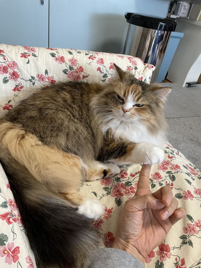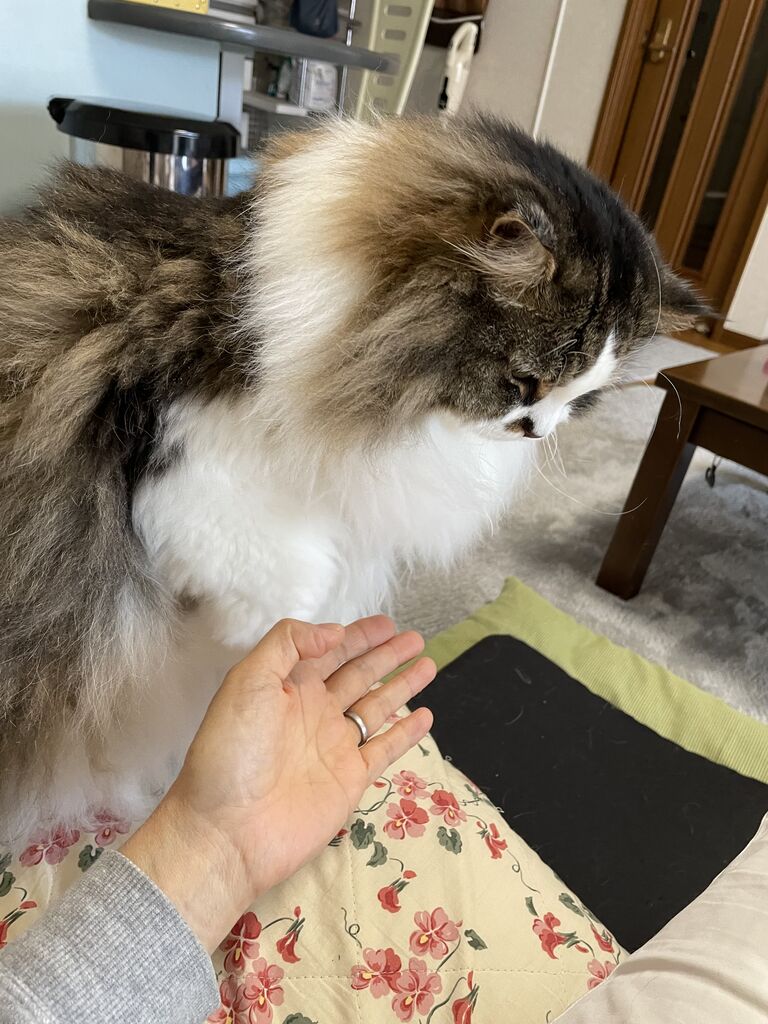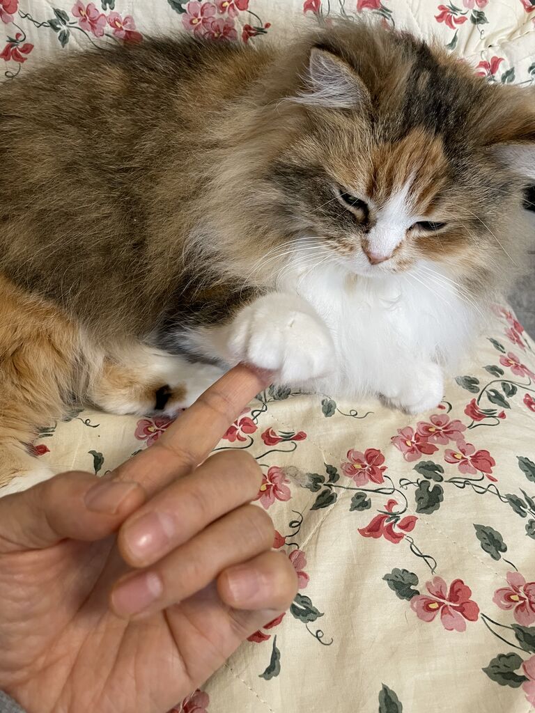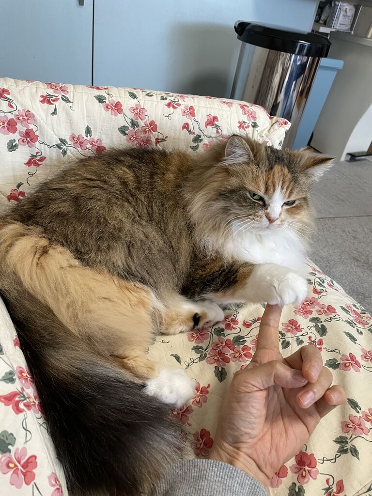 手を出しても乗せてくれないので前足を持とうとすると嫌がって持たせてくれない。
