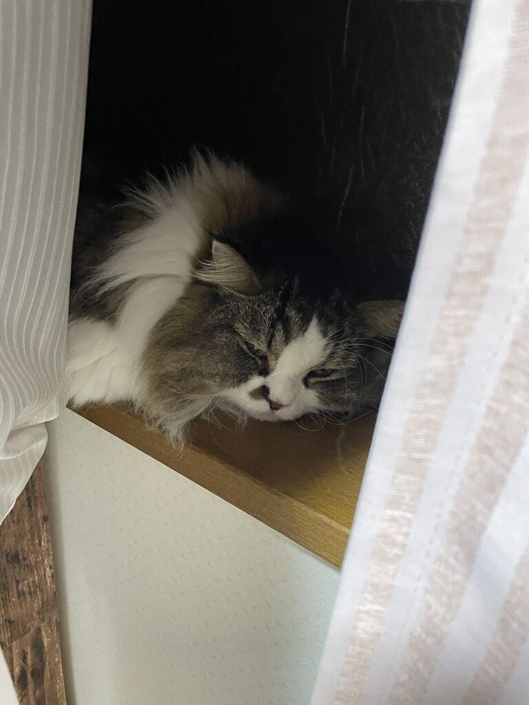 居心地いいところでお昼寝するのは気持ちいいよね。でも飼い主さんはちょっと心配。ちょっと淋しい。