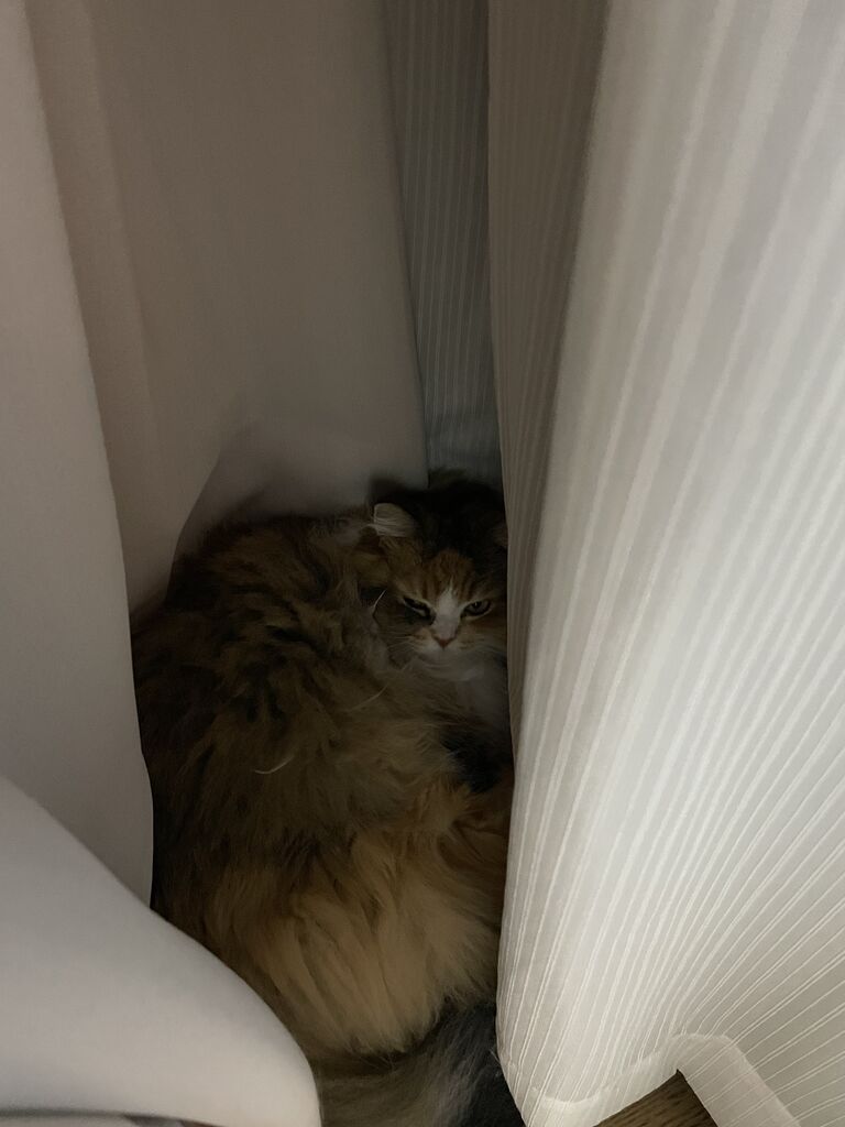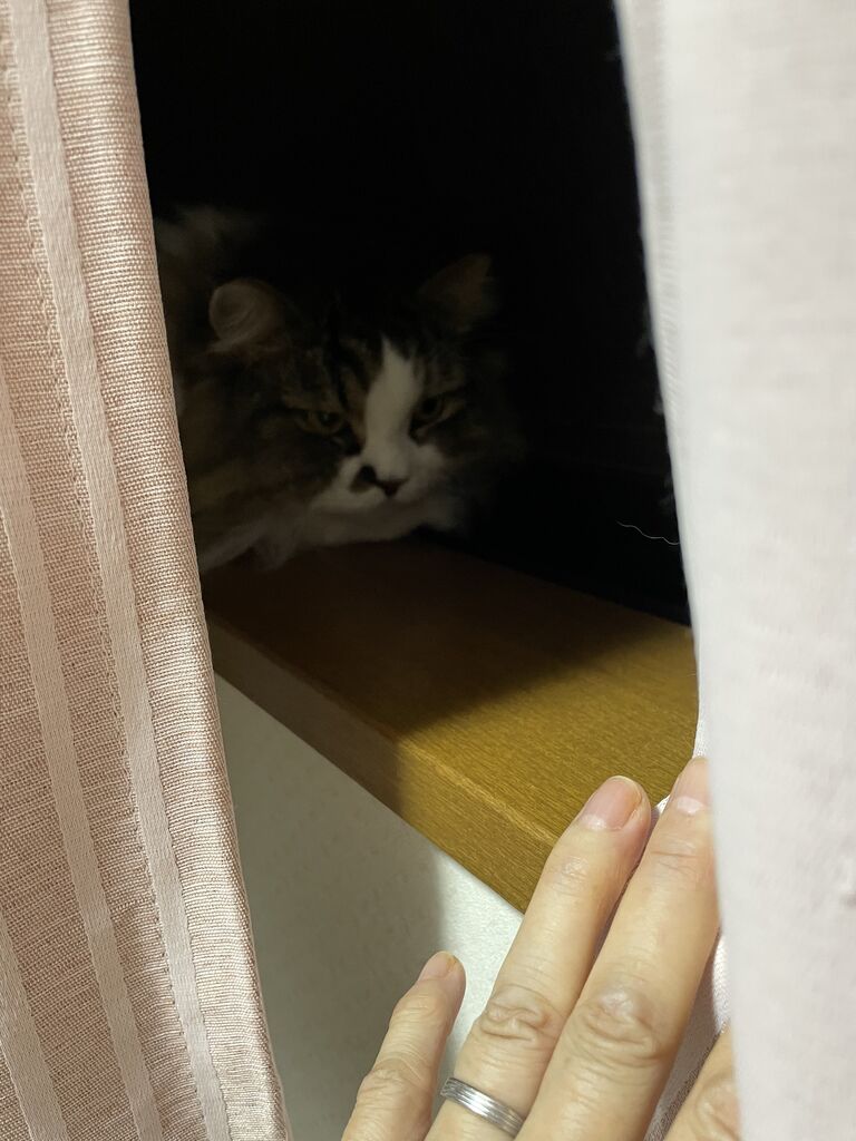 カーテンとカーテンの間にいたのね