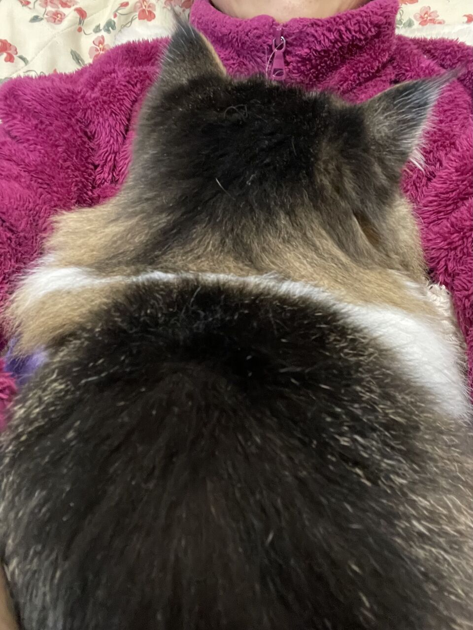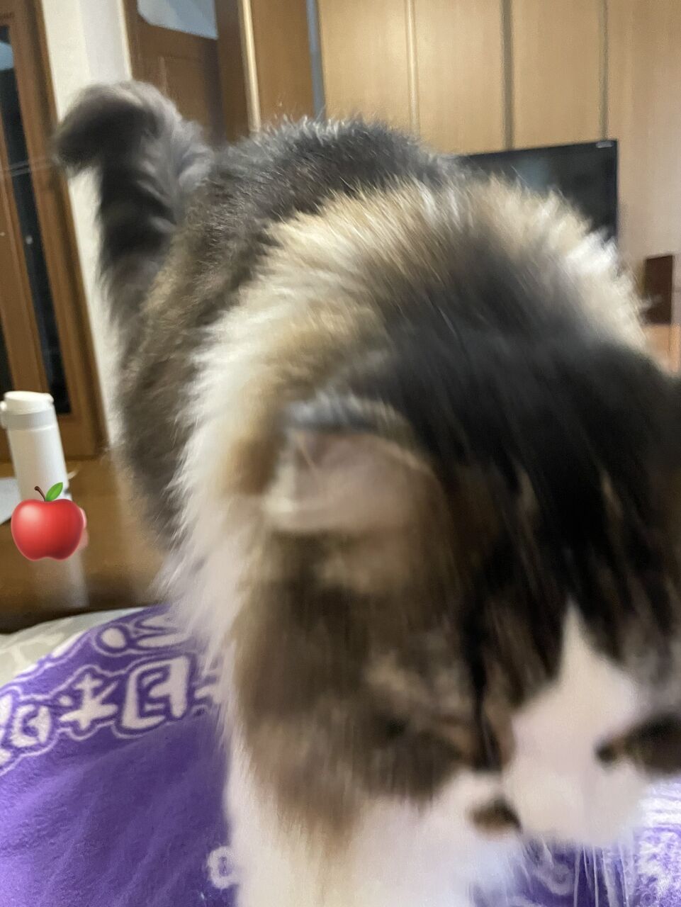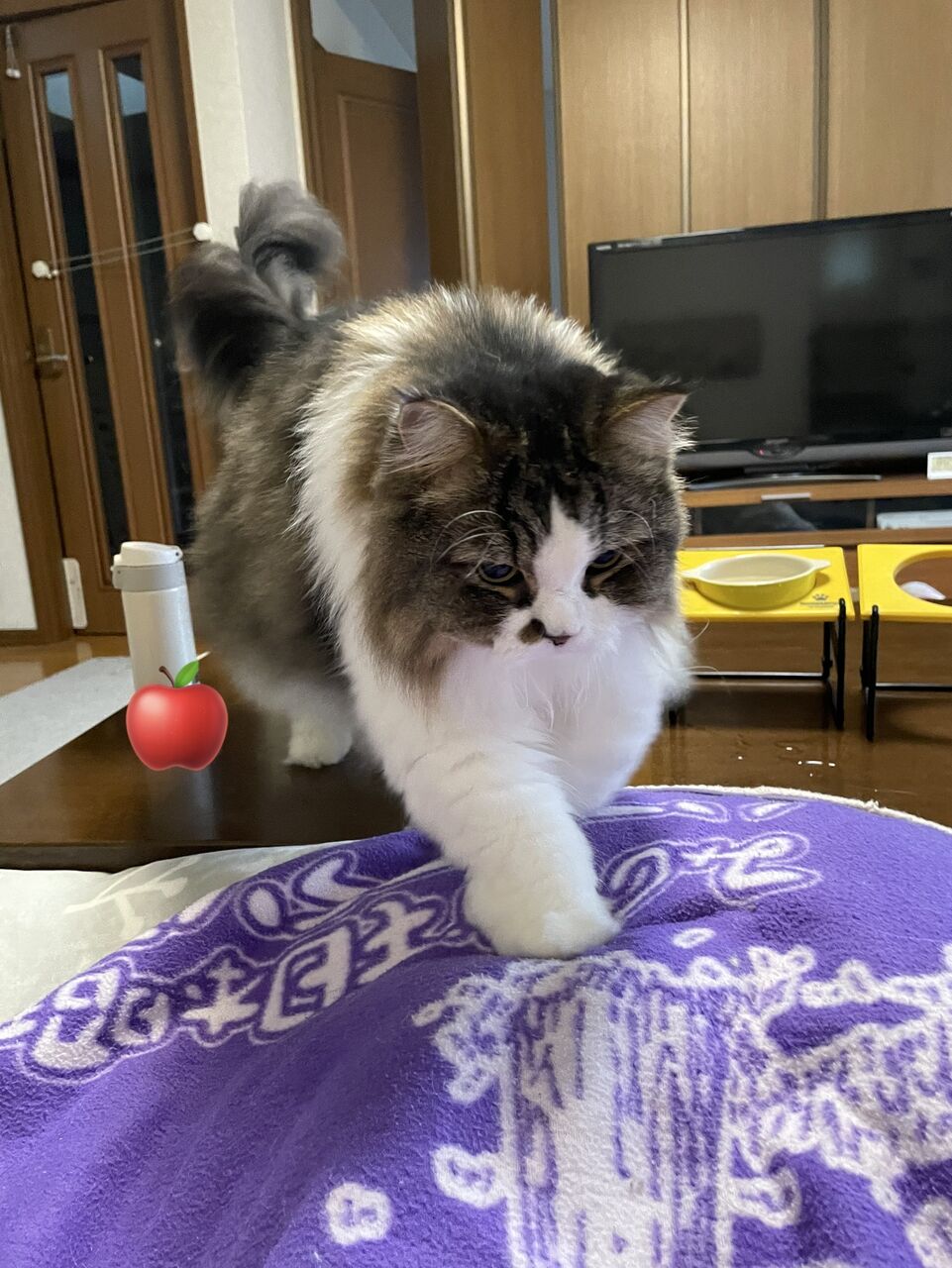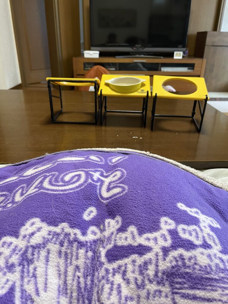 こたつから、私の足を渡ってひざへやってくるテンちゃん。