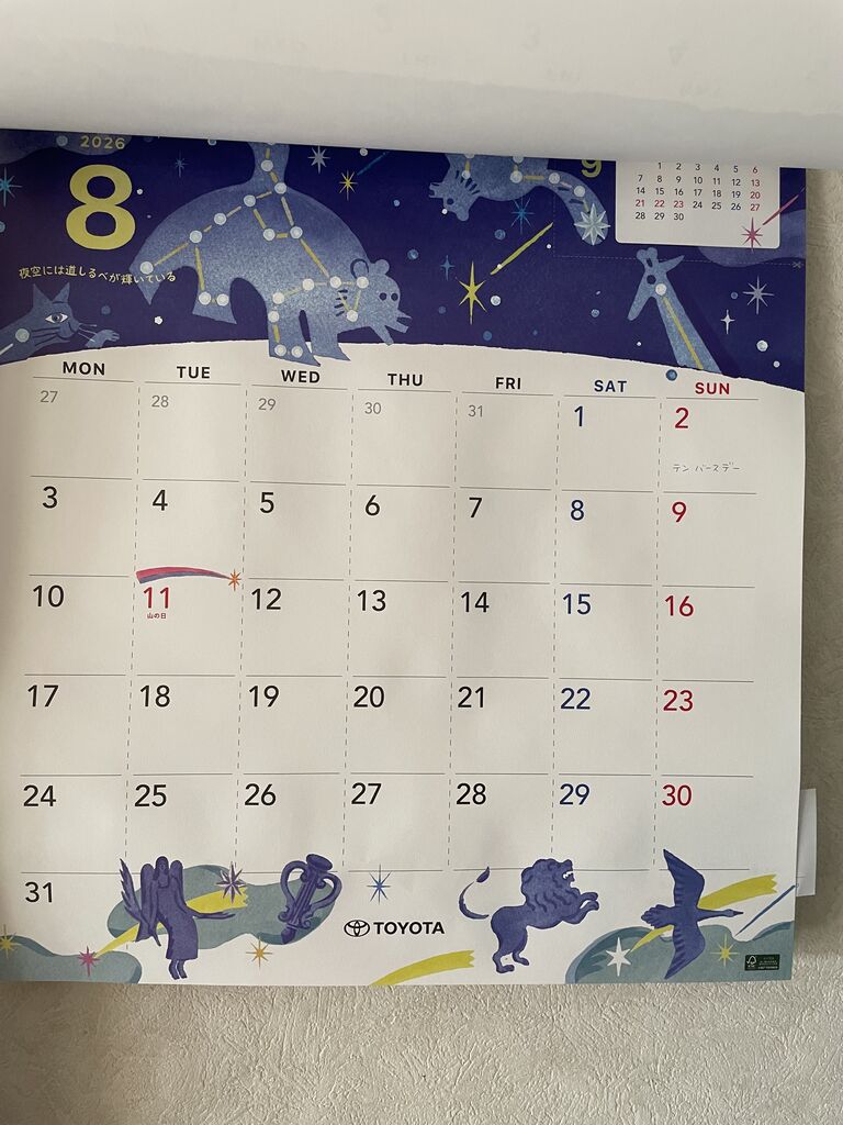 日曜始まりだったトヨタのカレンダーが、今年から月曜始まりになった。