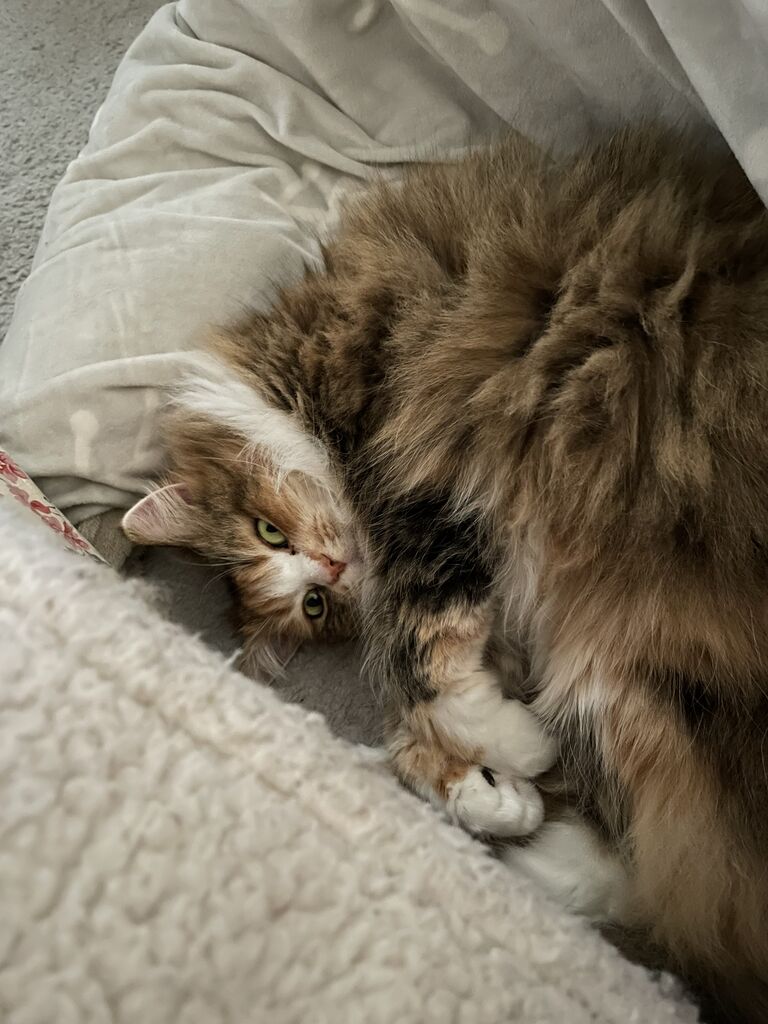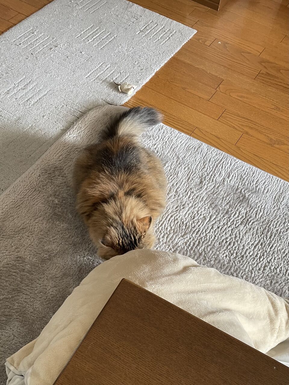 こたつの中で長いお昼寝をするなぎ。酸欠になるといけないから、ちゃんと出入口は開けてあるよ。
