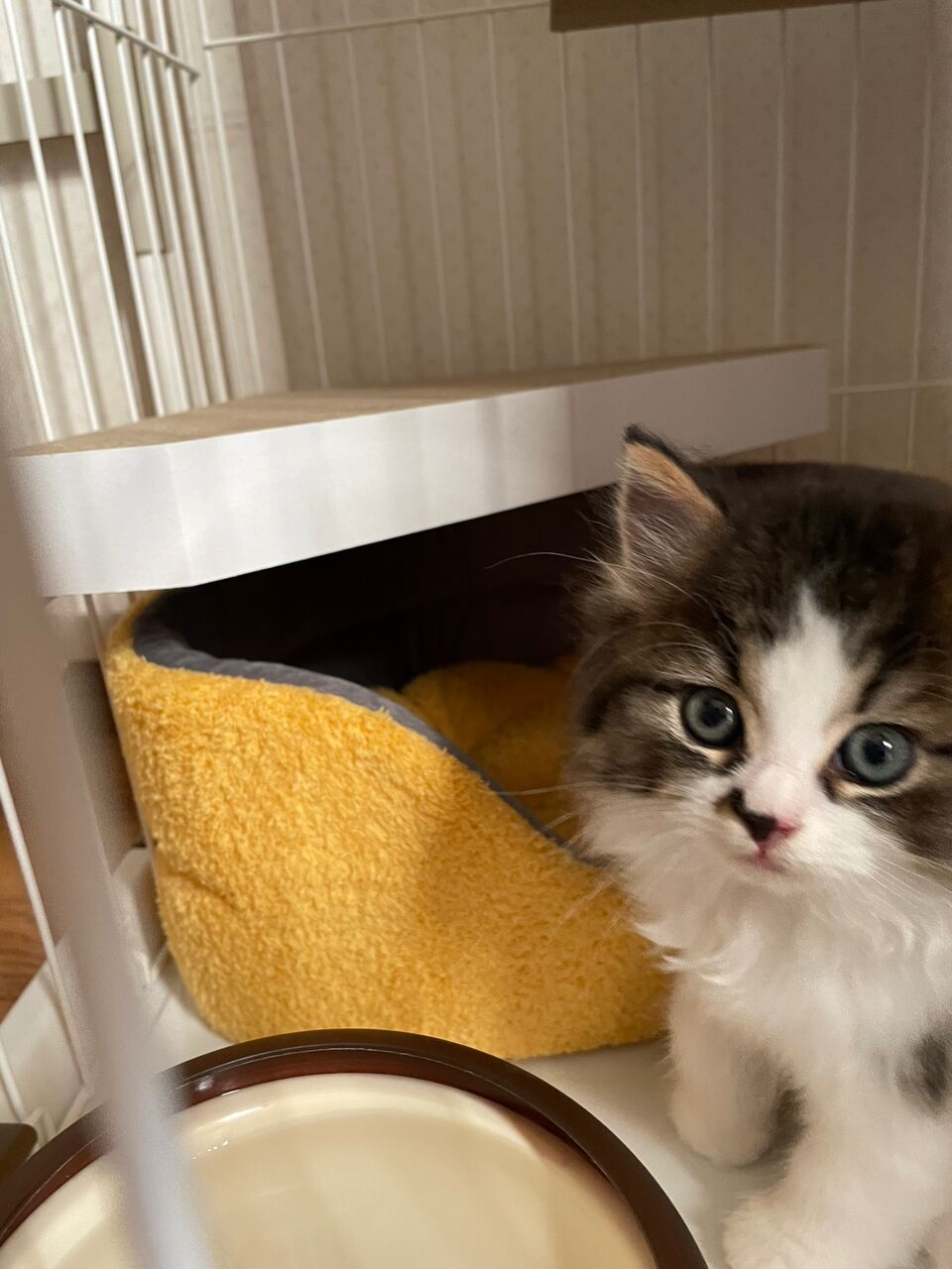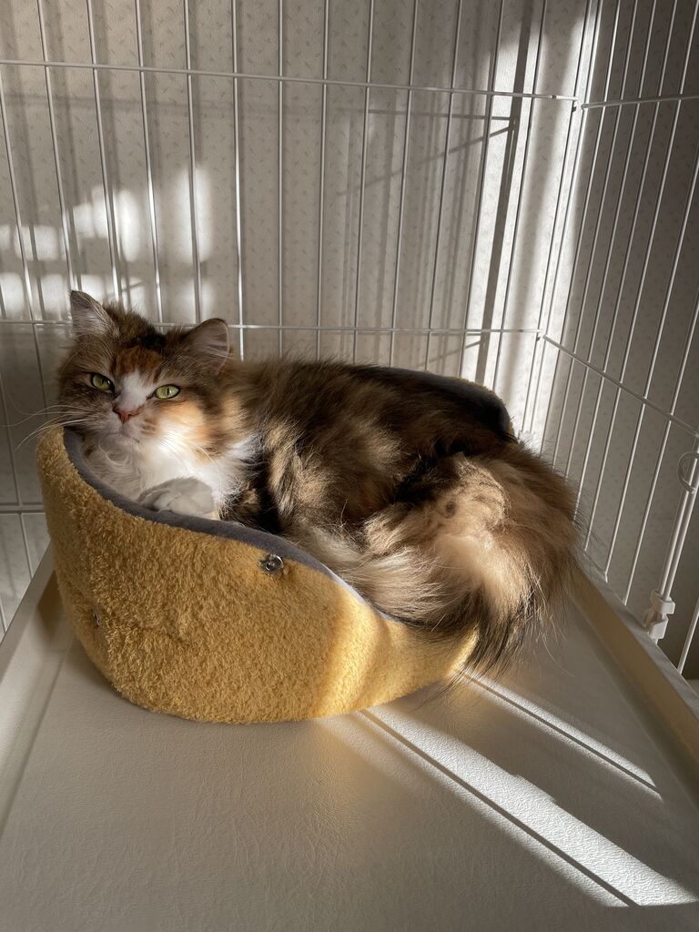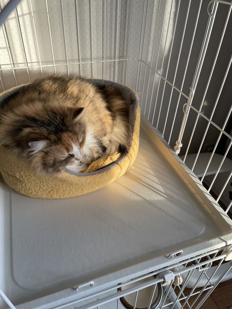 子猫のテンちゃん用なので、5歳のなぎが入っていても子猫に見える…胸がキュンとしてしまうのです。