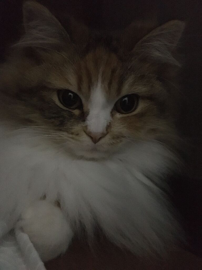 寝る前のひととき、なぎはかくれんぼに飽きたのか、最近は小窓のサンに静かに座っていることが多い。