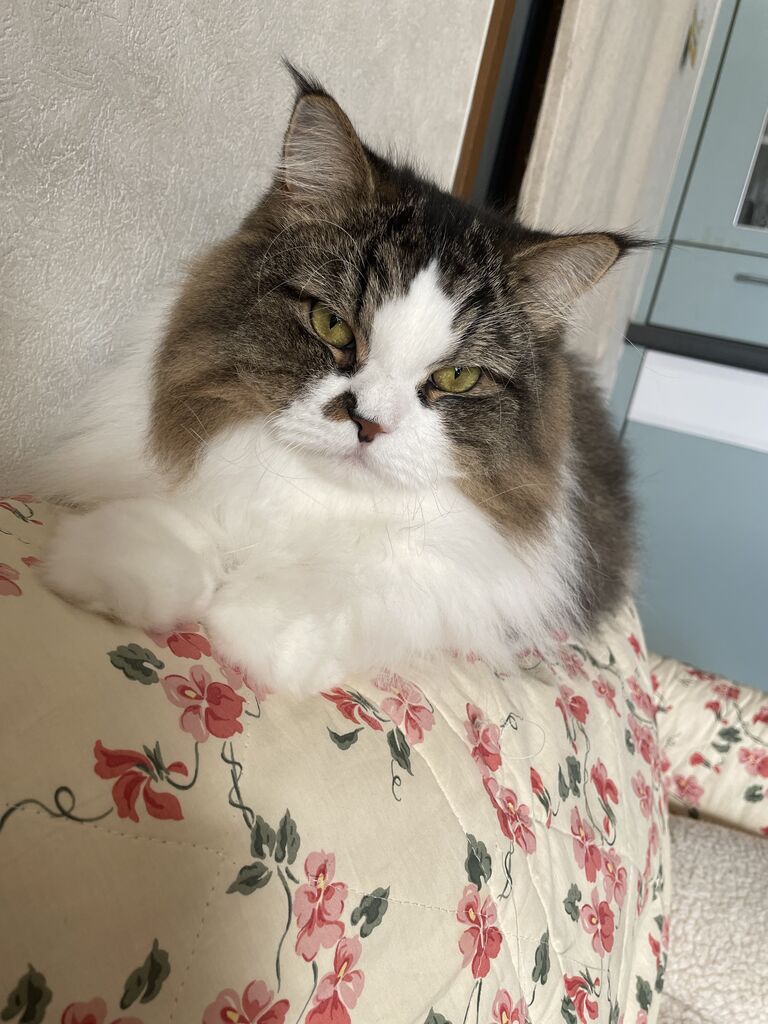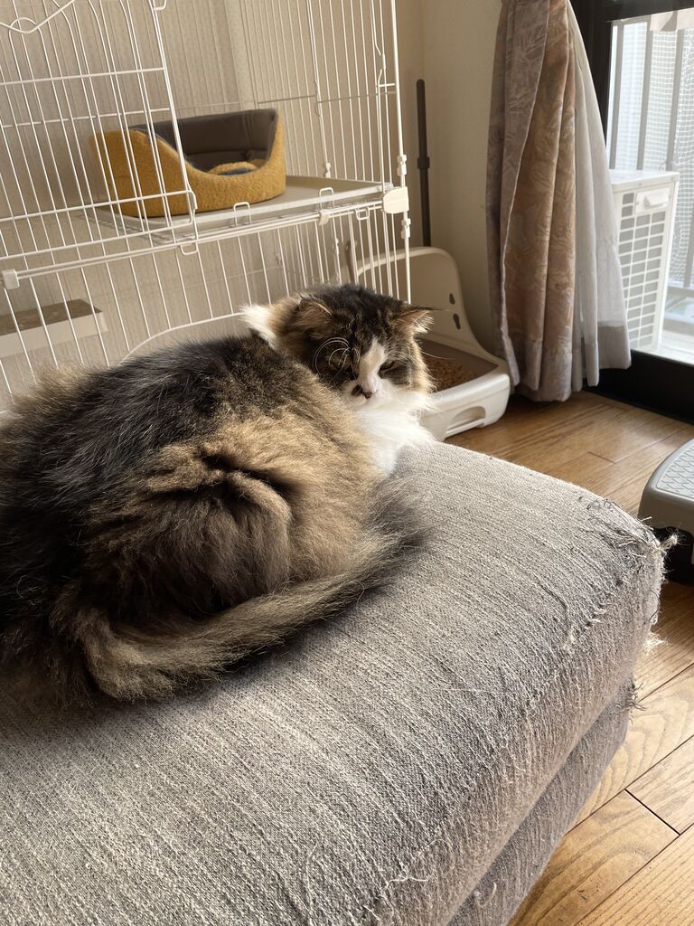 ある日、大きな座椅子でおくつろぎ中のテンちゃん。そこへなぎがやってきた。