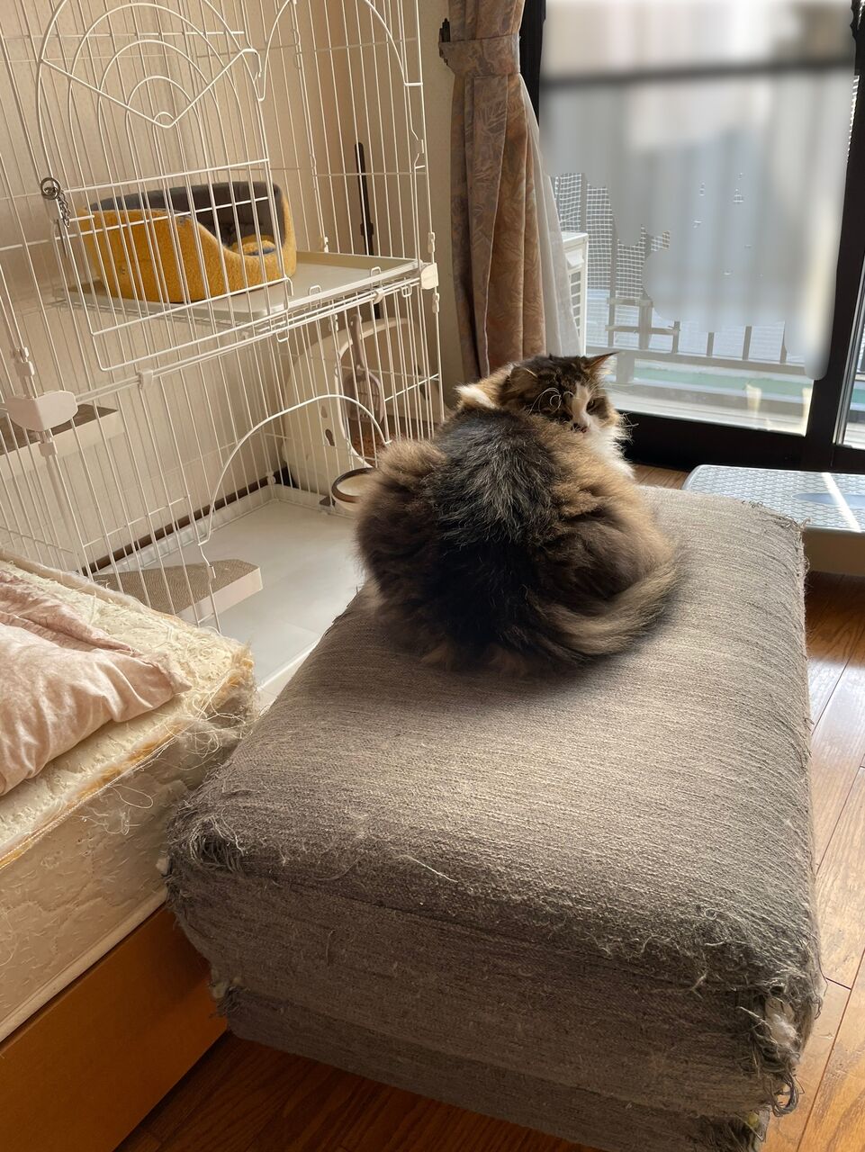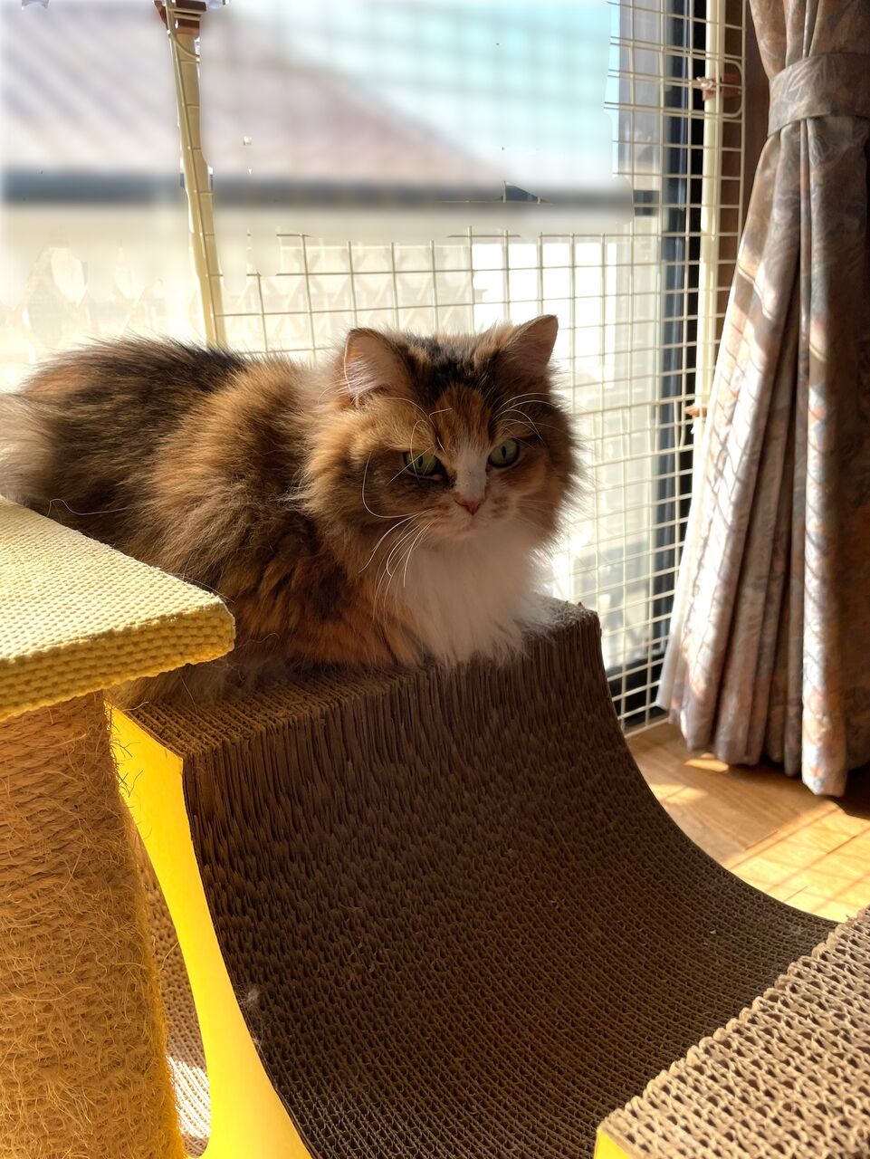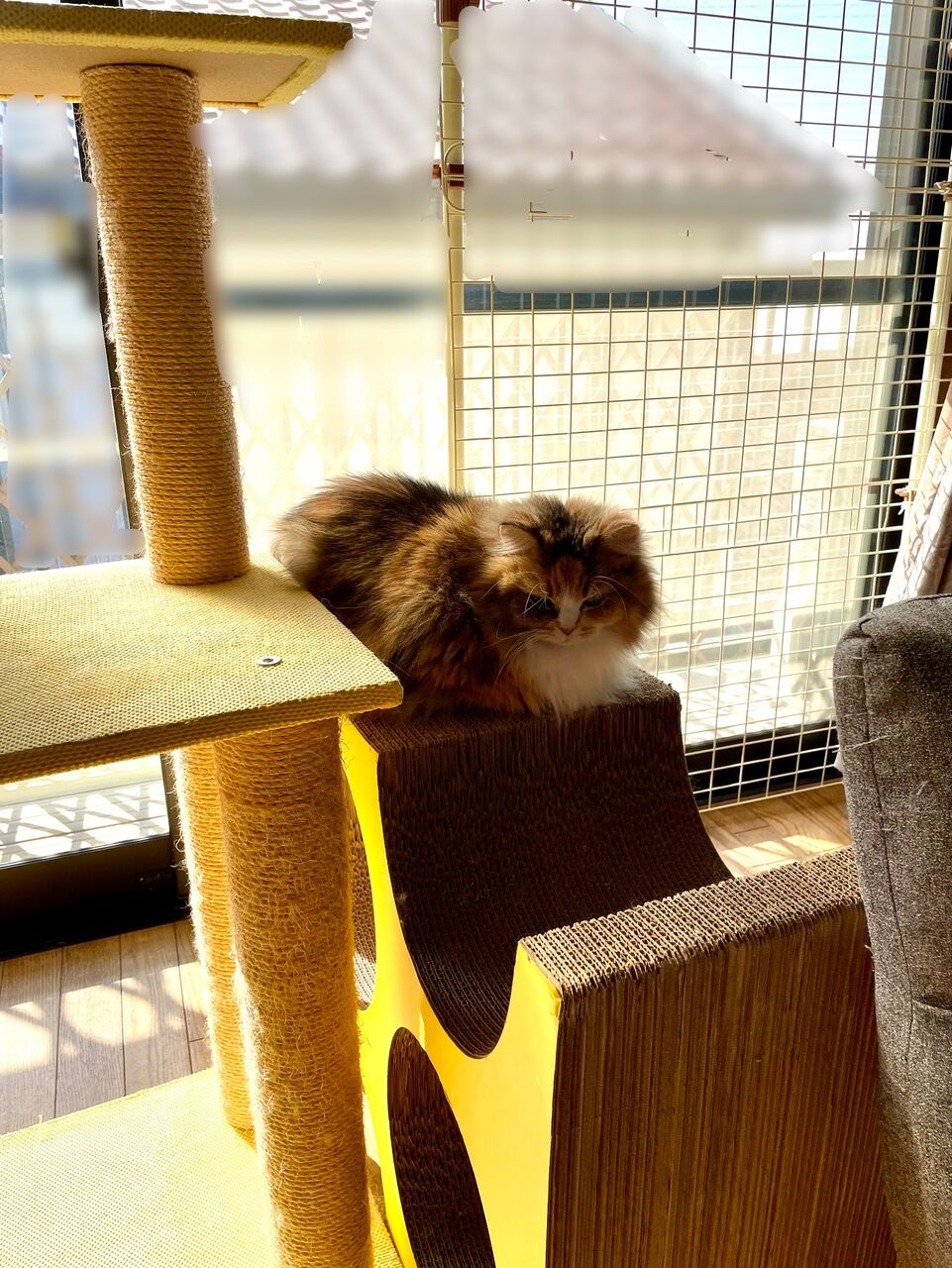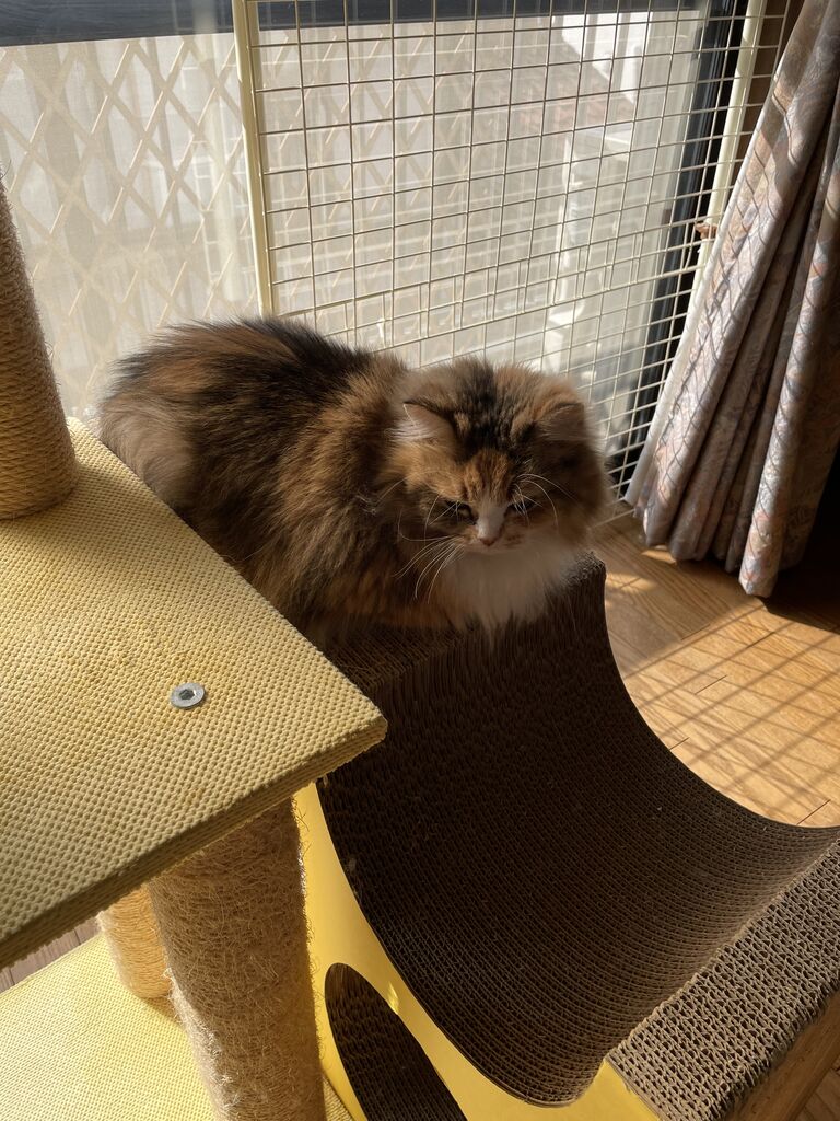 両お猫さま、それぞれの部屋でひなたぼっこ中。