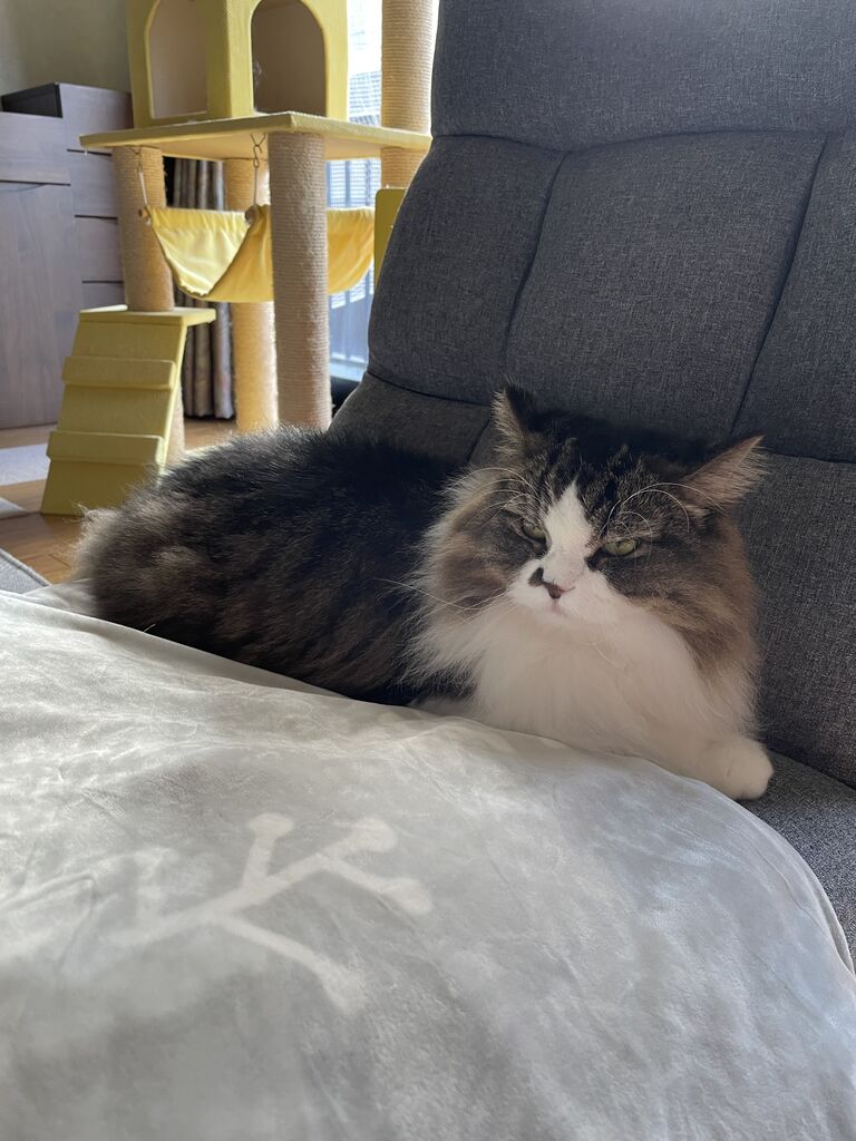 朝ごはんを食べ終わって何気なく振り向いたら、なぎがいた。上から私を眺めていた。