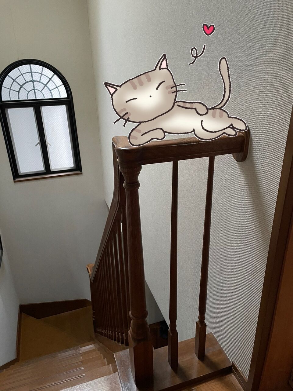 猫は上れるところしか上らないらしいけれど、万一足が滑ったら1階の廊下に真っ逆さま!