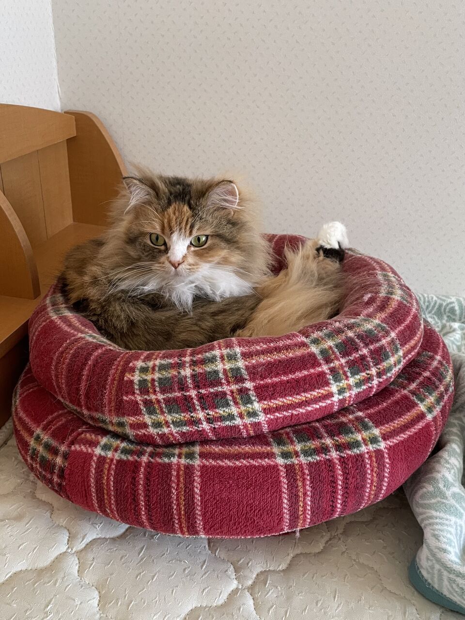 あまりベッドに入らないテンちゃんが、私の手作りベッドの中にいる!