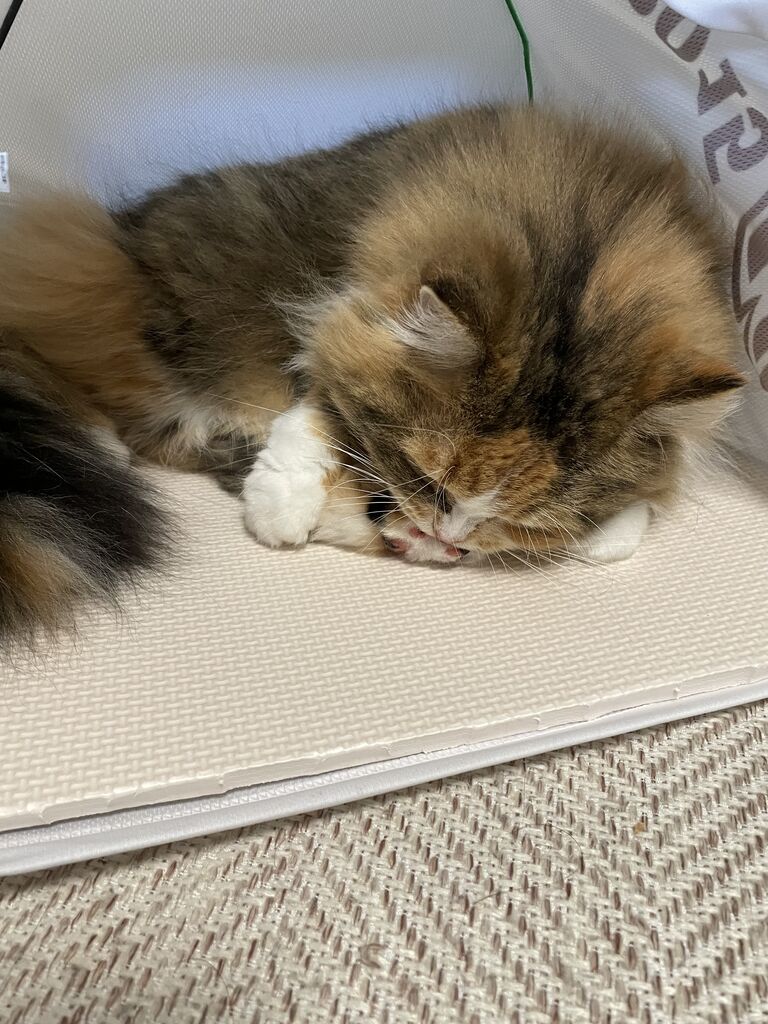 ふたりともこれで爪とぎをするのが大好きで、テントも中に入るというより爪とぎに使っている感じ。