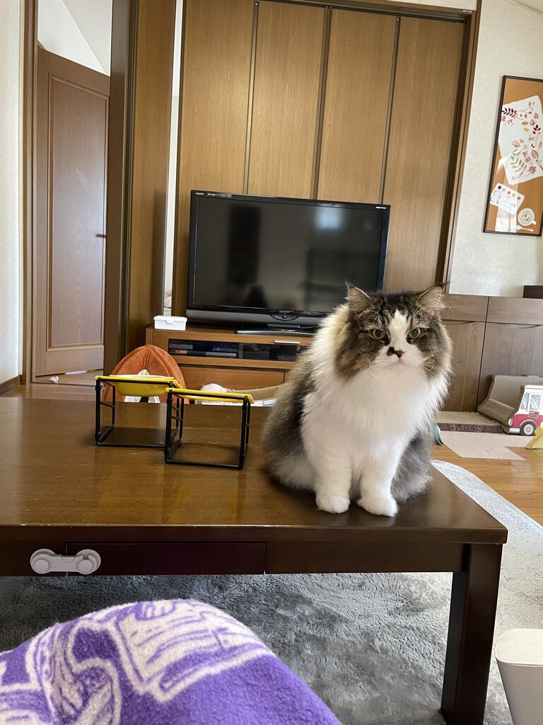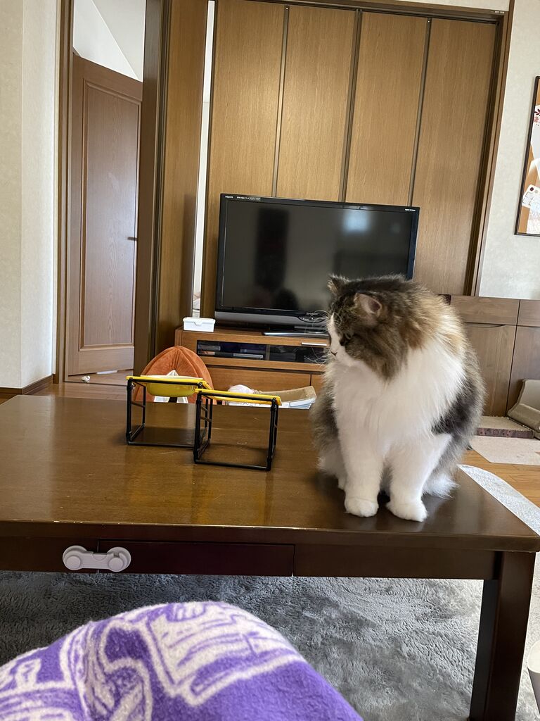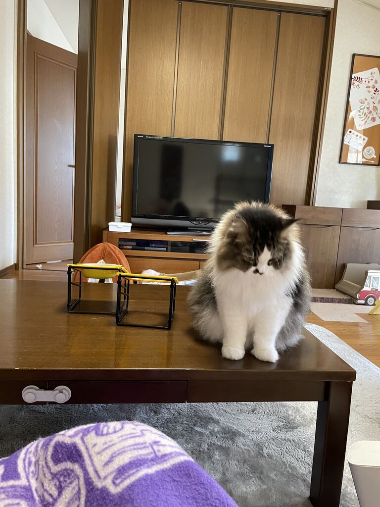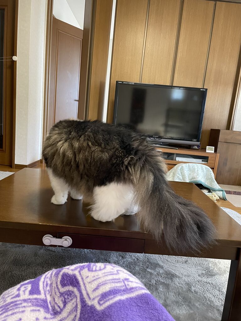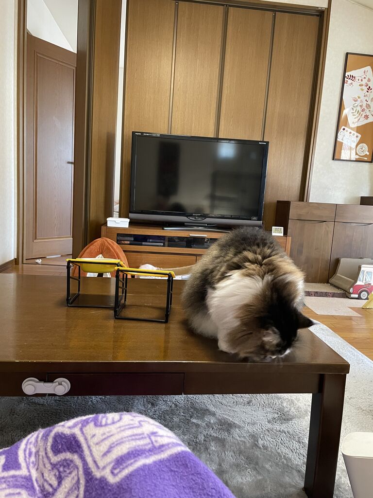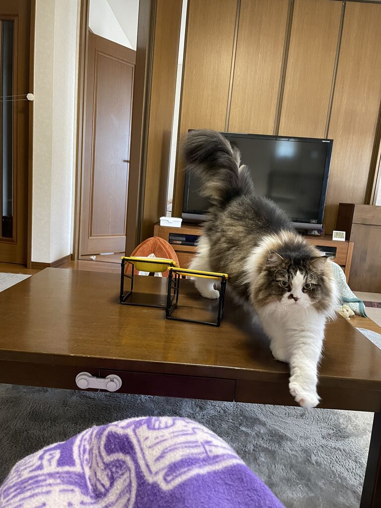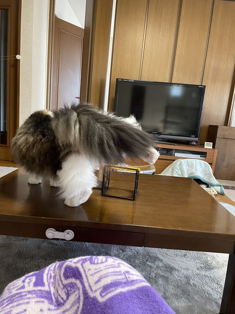テーブルをぐるっと一周、ただそれだけ。なんでもないテンちゃんだけどキュート過ぎない?