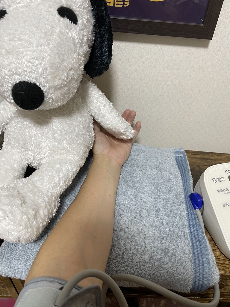 もちろん猫ちゃんもいいけれど、血圧計のブーンって音にびっくりして逃げ出してしまいそうだから、動かないぬいぐるみ。