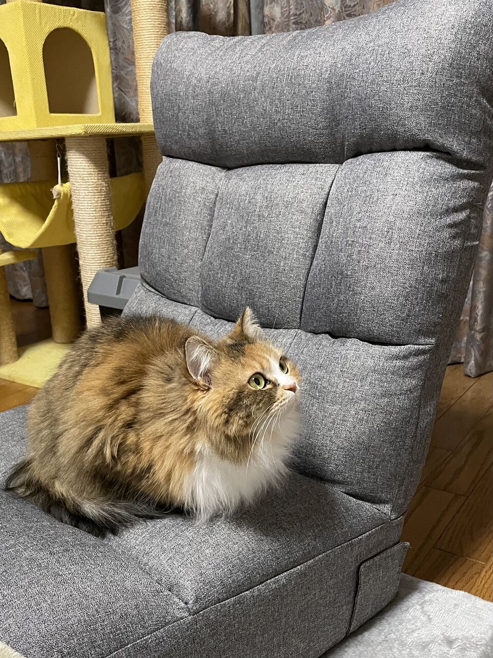 新しい座椅子の座り心地を試してます