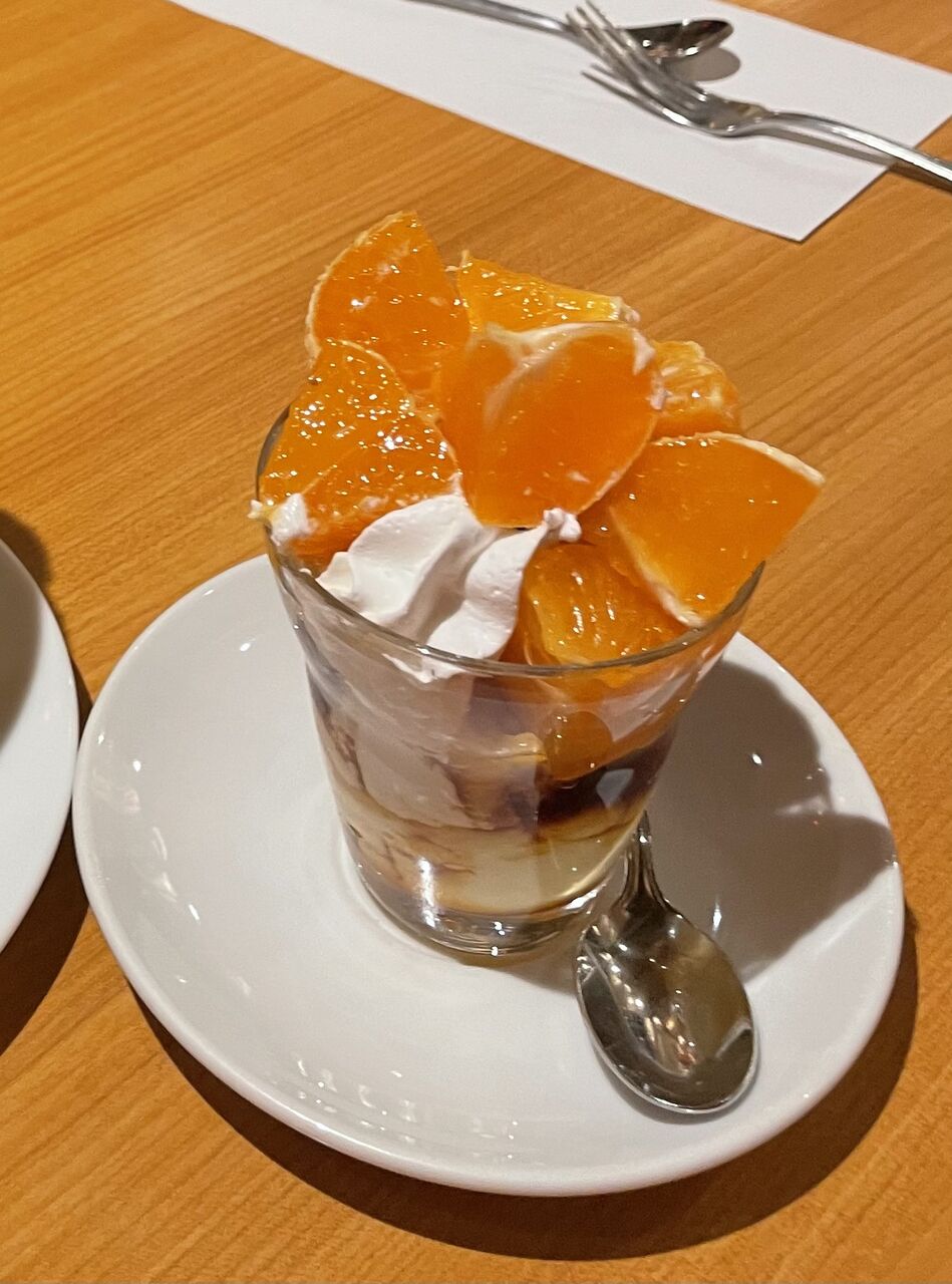 ハンバーグの写真は変わり映えしないので、みかんパフェの写真。みかんどころなので、みずみずしい適度な酸味のある美味しいみかん!