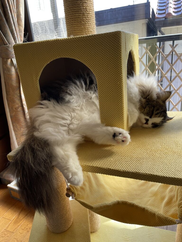 今日はボランティアの公演だった。昼過ぎに帰ってきたら、なぎテンはお昼寝中。