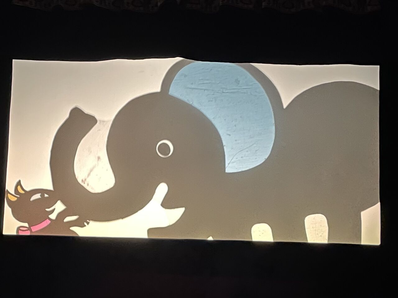 すごく集中しているので気づいていないけれど、どうやら私は影絵を見ながらまたは演じながら、マスクの中で下顎を突き出したぶーたれ顔をしているよう。