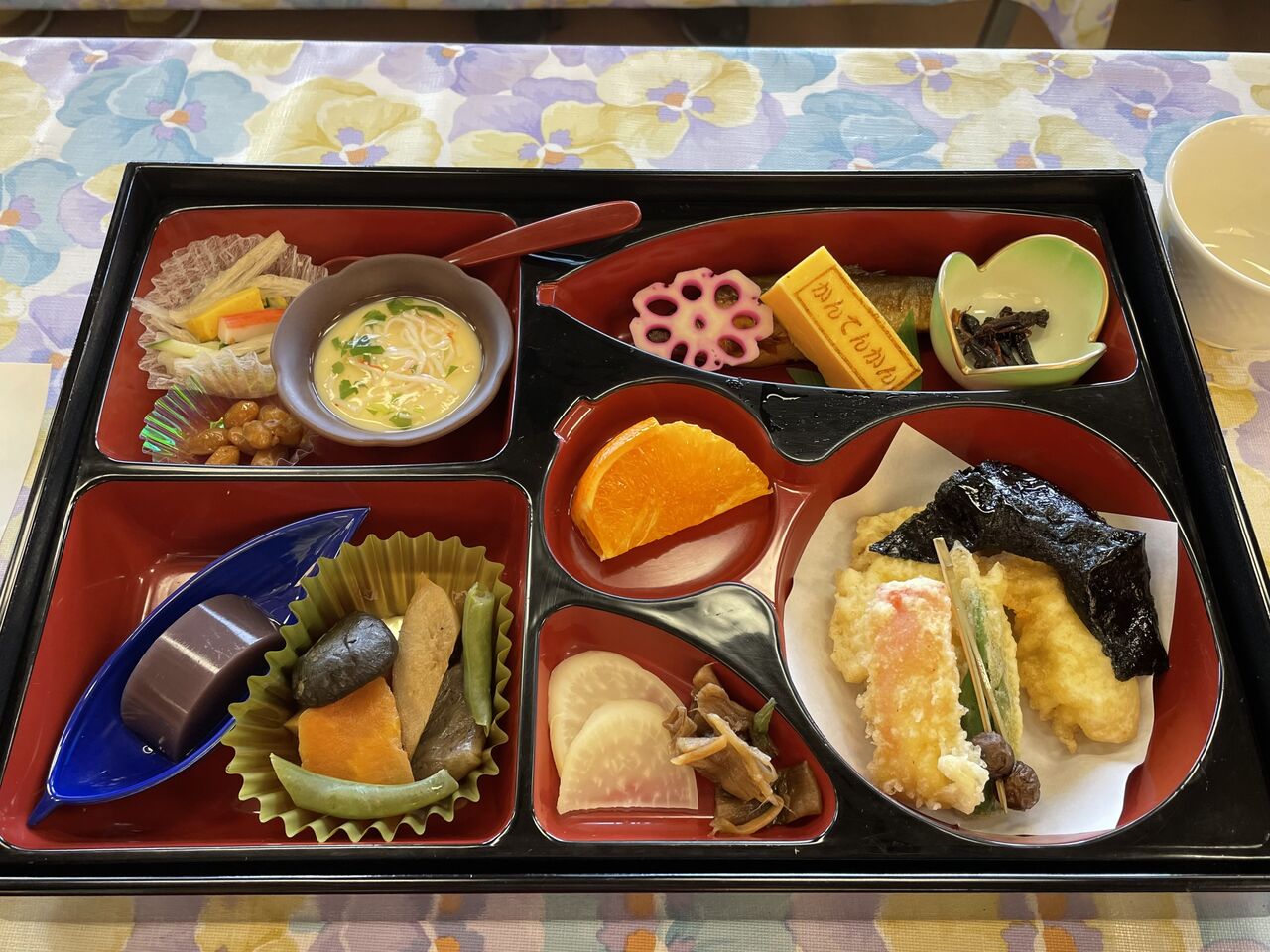 寒天列車のときは、すべての料理に寒天が使われていたけれど、とろろご飯がメイン。他は地元の食材を活かしたもの、例えばイナゴの佃煮や鮎の甘露煮や寒天サラダなど。