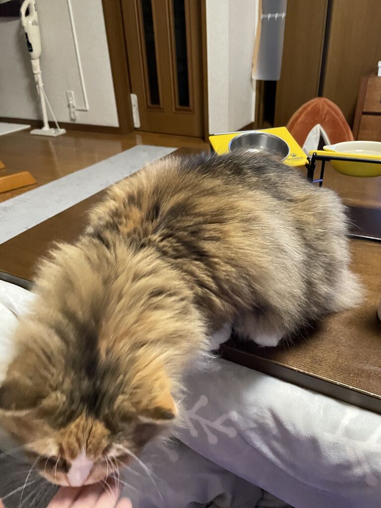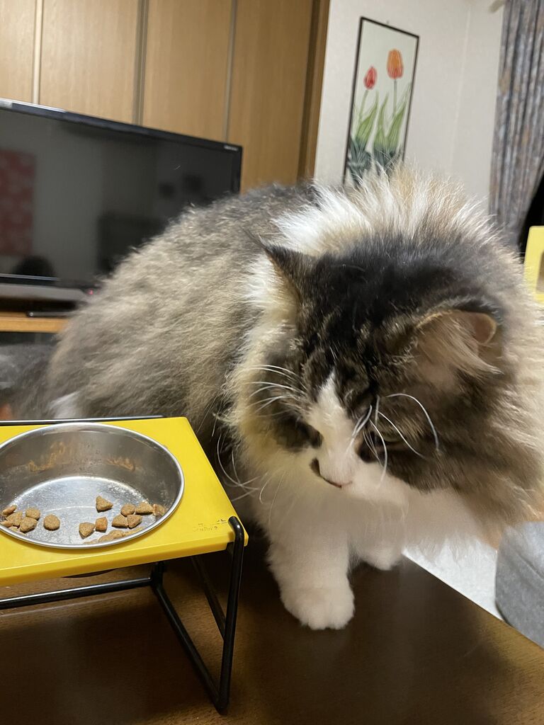 思っていたより遅くなっちゃったので、なぎテンはおなかを空かせて私の帰りを待っていました。