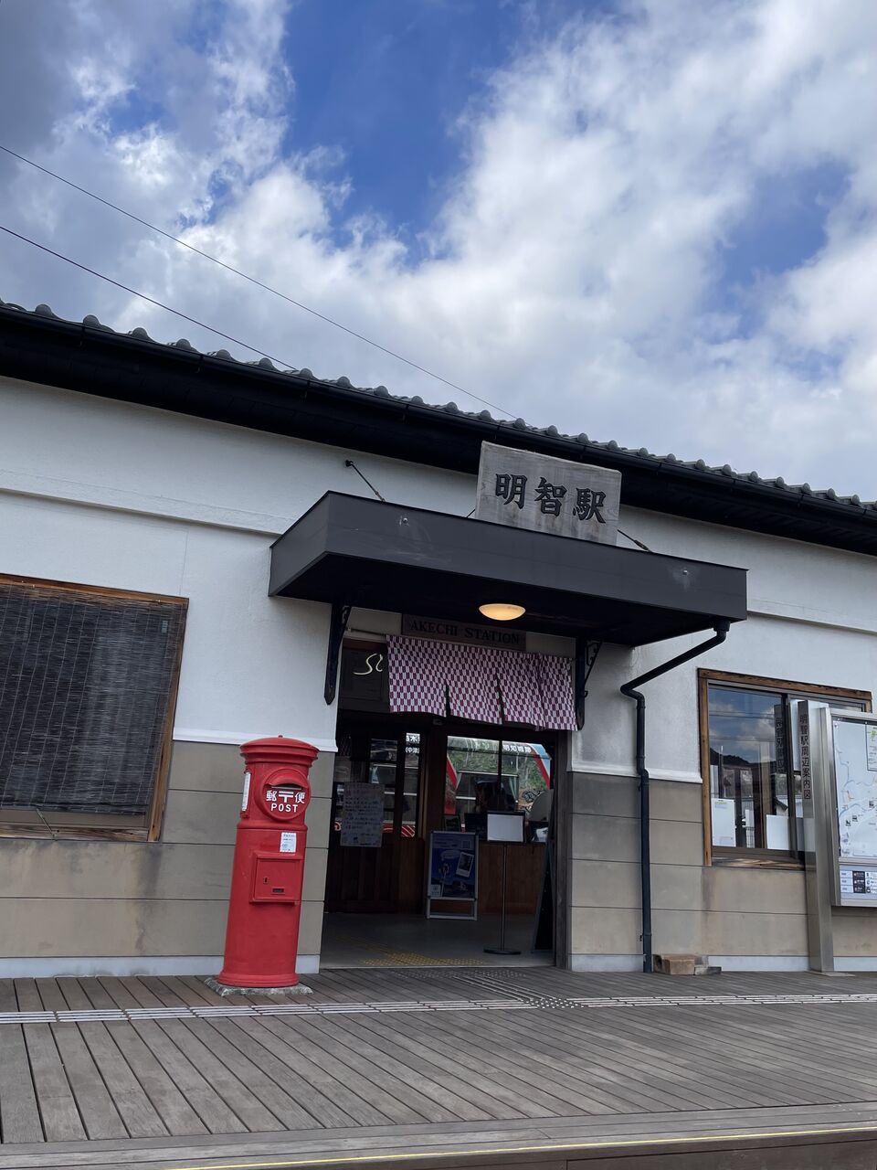 明智駅に到着