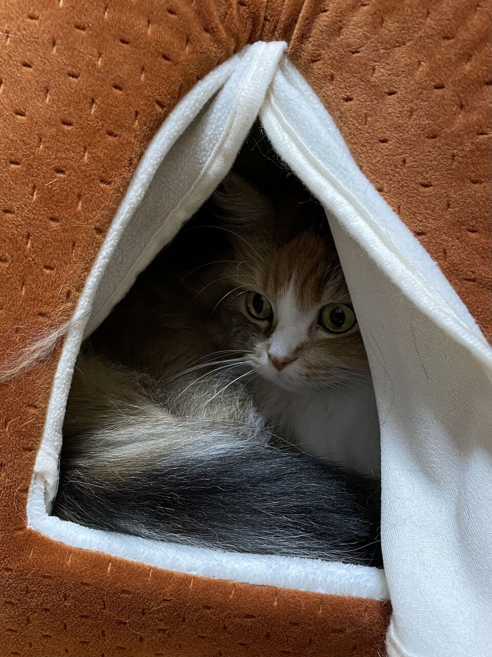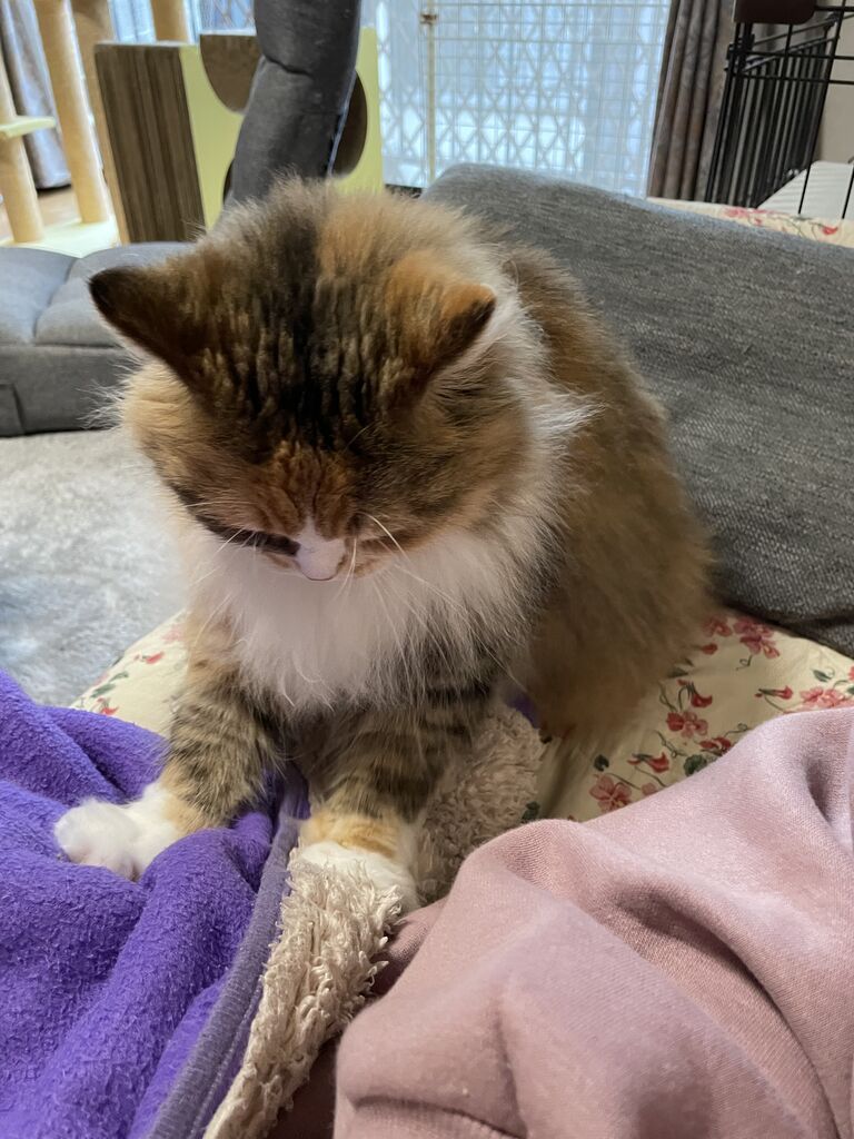 スマホを向けるとすぐ下を向いてしまうテンちゃん