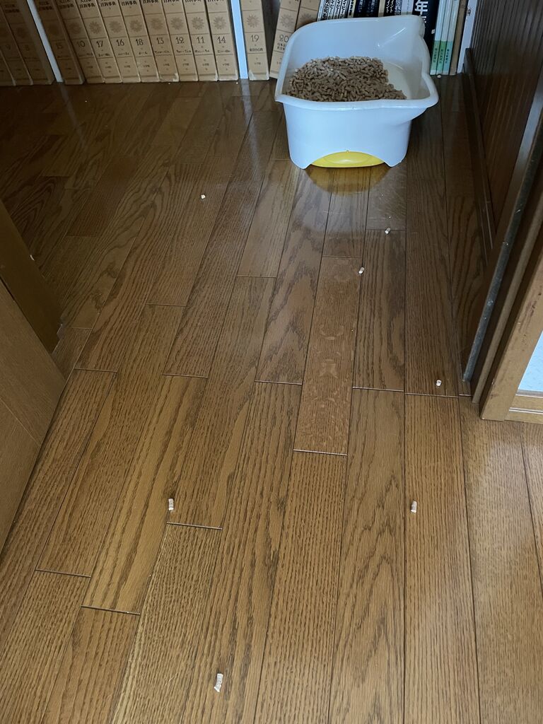 私の部屋の外のトイレをガリガリする音で目が覚めた。閉めたドアの下の隙間から猫砂が転がってくる。