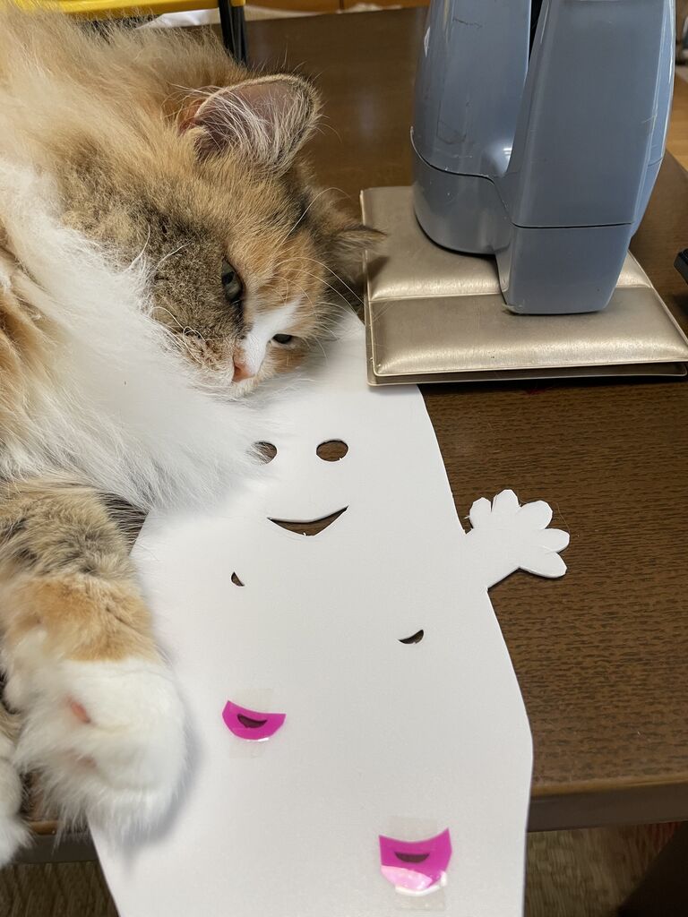ミシンにも、手ぬぐいのアイロンにも慣れて反応しないなぎテン。