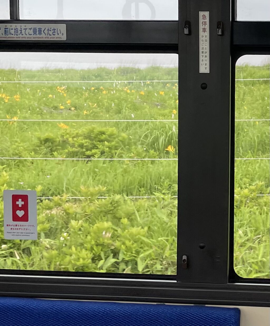 私がバスから見たのと、ダンナが車から見た景色は目線の高さが少し違うかもしれないな。それにニッコウキスゲは一日花、さっきの雨でつぼみが膨らんだかもしれない。明日に期待して寝ましょう。