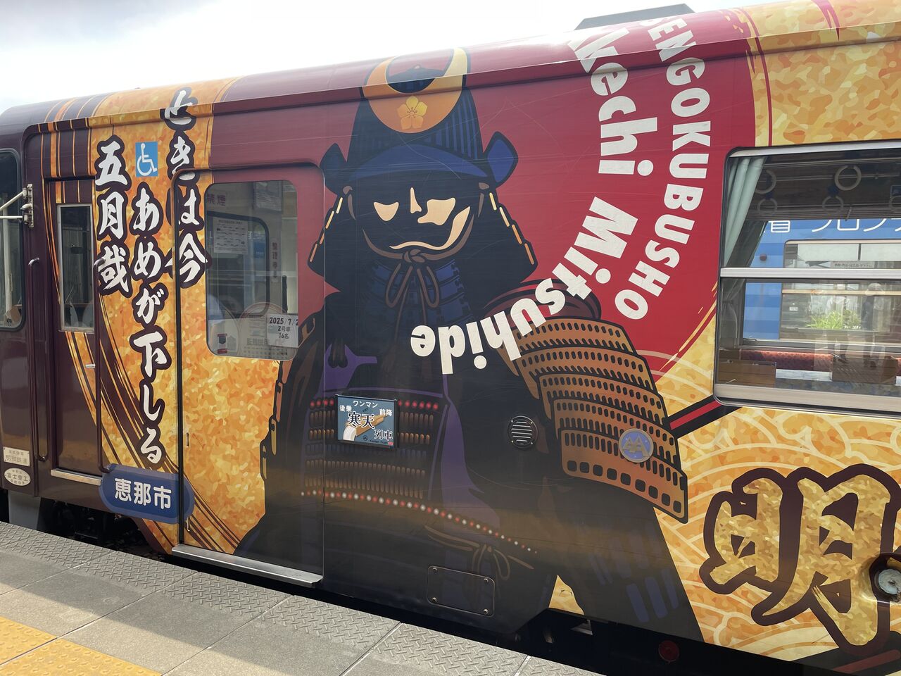 明智駅には列車のヘッドマークが飾ってありました