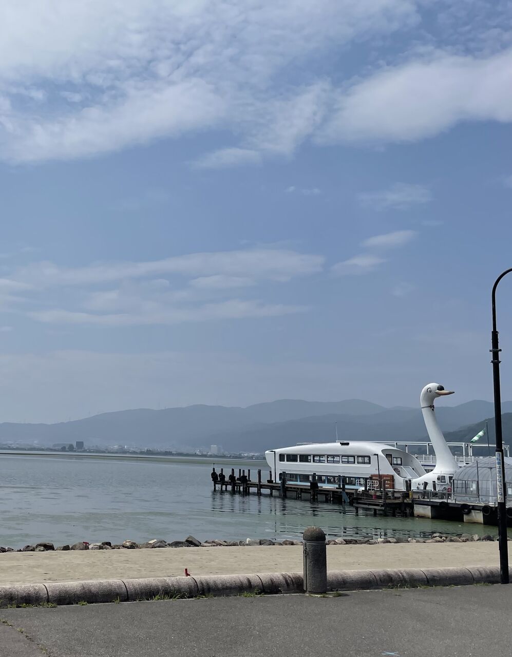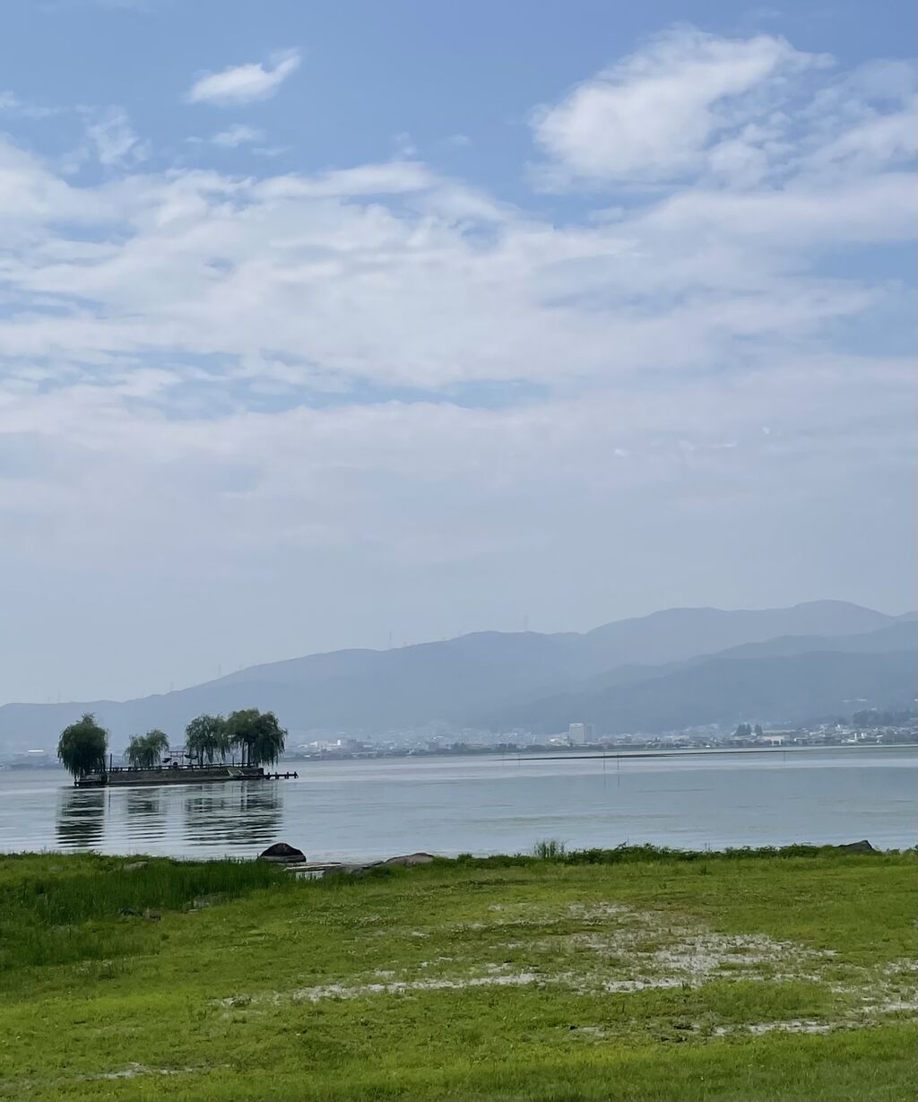 バスの時間まで小一時間諏訪湖を見て過ごす。暑いけれど風が吹くと爽やか。やっぱり名古屋とは違うね。
