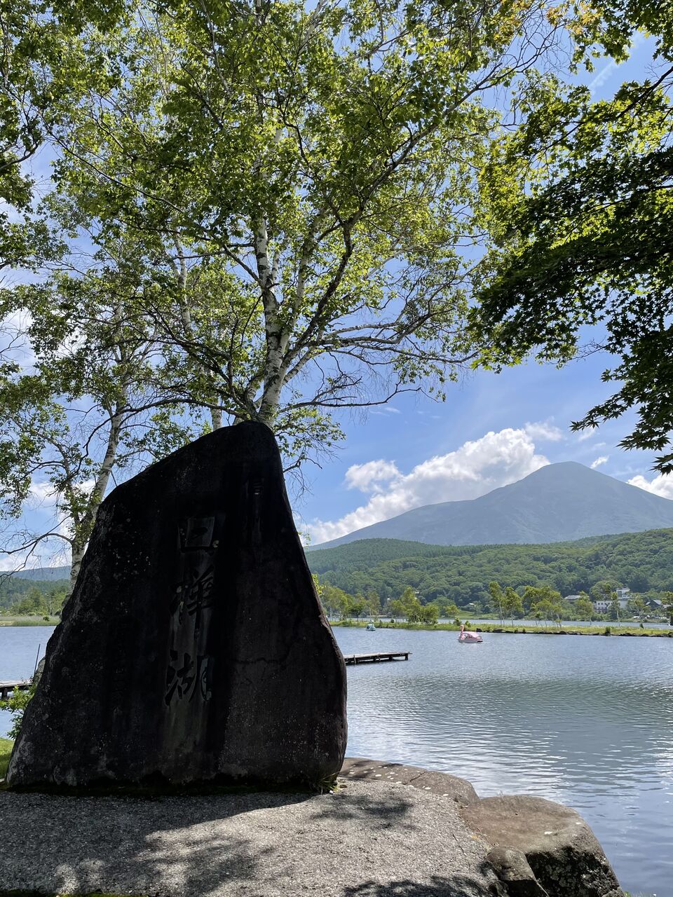 見にくいけど石碑には『白樺湖』って書いてあります