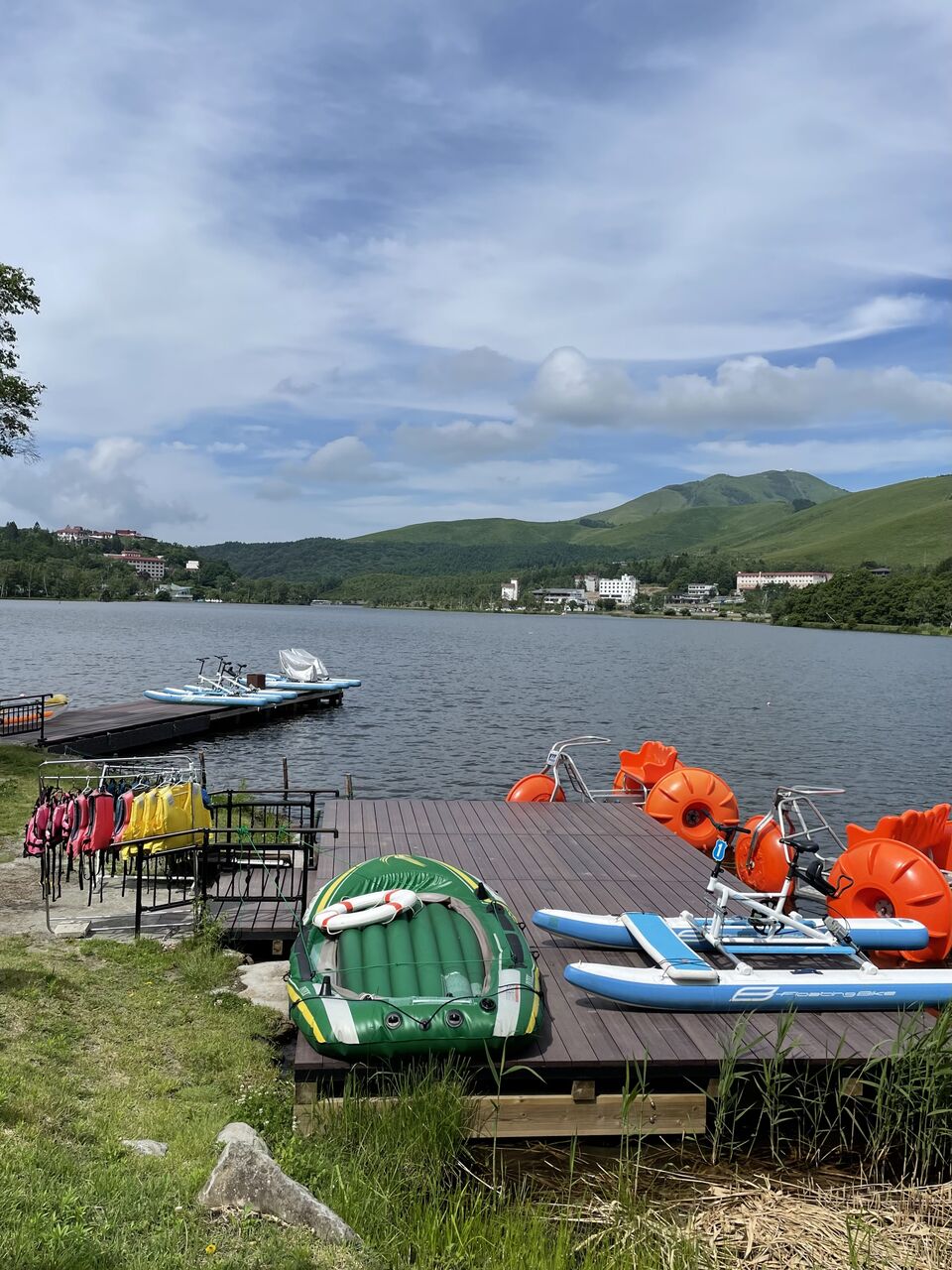 平日にしては湖岸でくつろいでいる人、デイキャンプをしている人が多い。風が吹くととても気持ちいい季節だもんね。