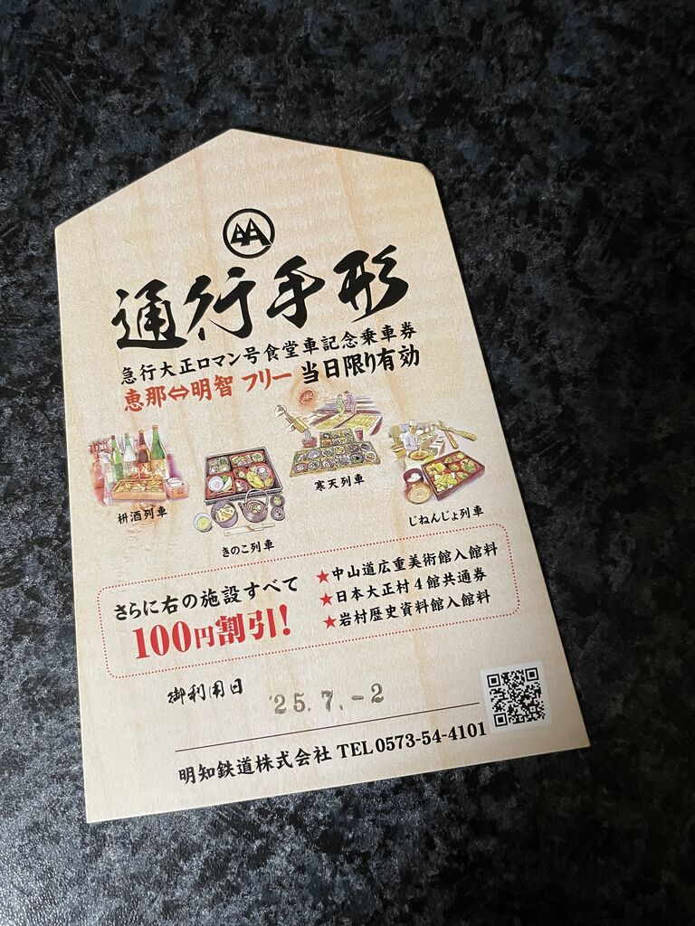 寒天列車には、お料理代金と明智鉄道の1日フリー切符がついているので、帰りはどこで降りても何度乗ってもOK。