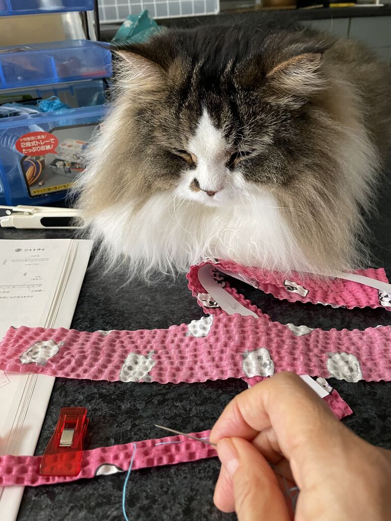 リップルというポコポコした生地はチャコペンシルがうまくつかず、ちょっと面倒だったけれど、形になってくるとめちゃくちゃ可愛くて。