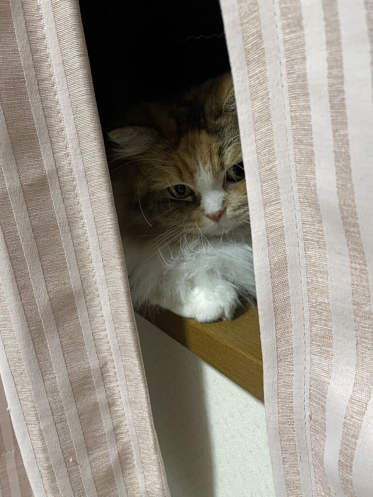 テンちゃんは隣の部屋に隠れて姿は見せず…
